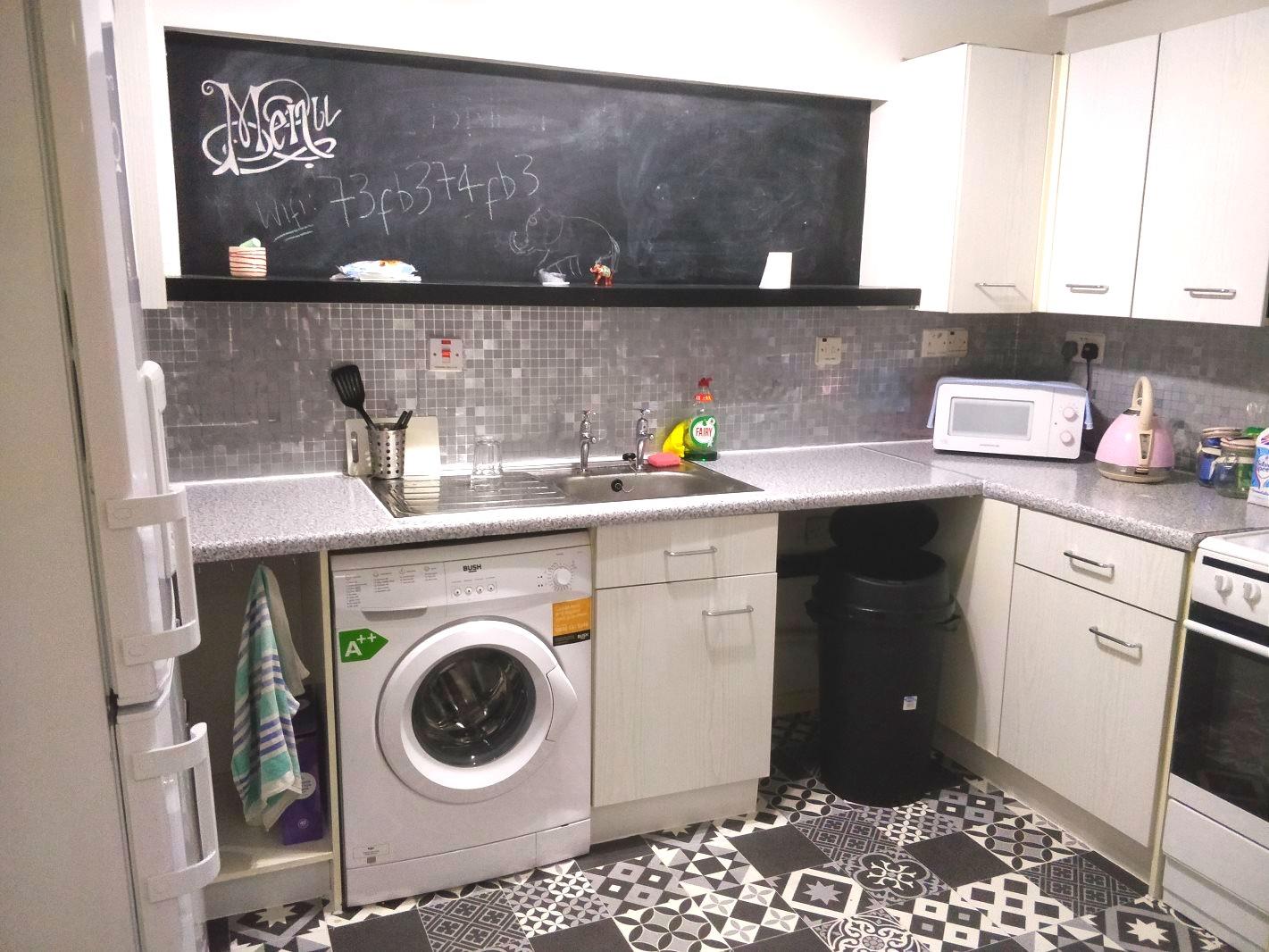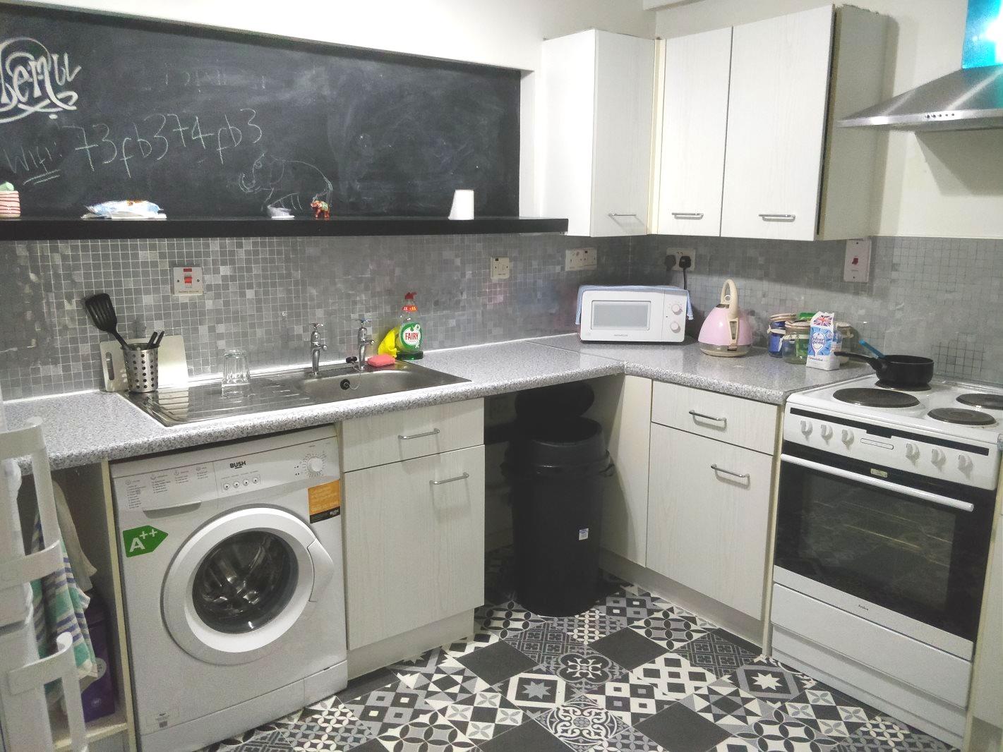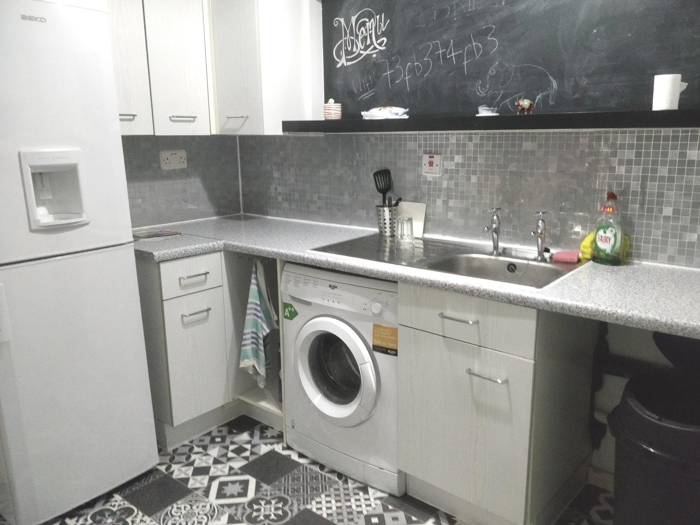 Fitted with a matching range of base & eye level units. Appliances by Bosch. Counter tops - Laminates. Extractor hood Overhead. Hob - Electric. Spacious. Vinyl flooring. Low voltage lighting. Recently Modernised. Shelving. Wall mounted fixture.
