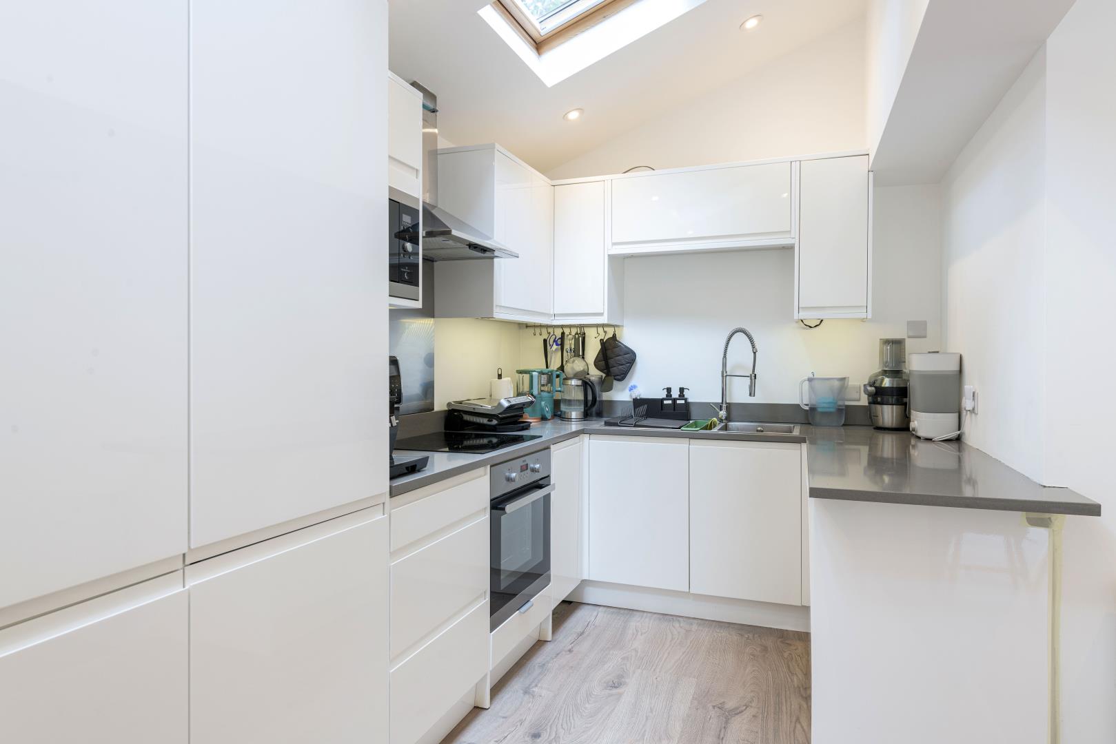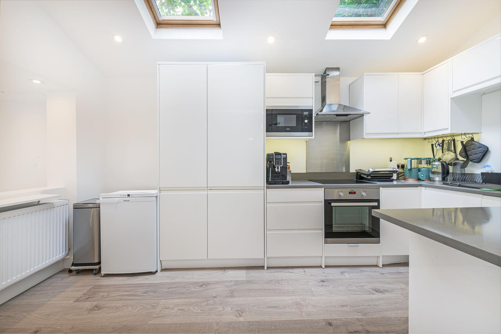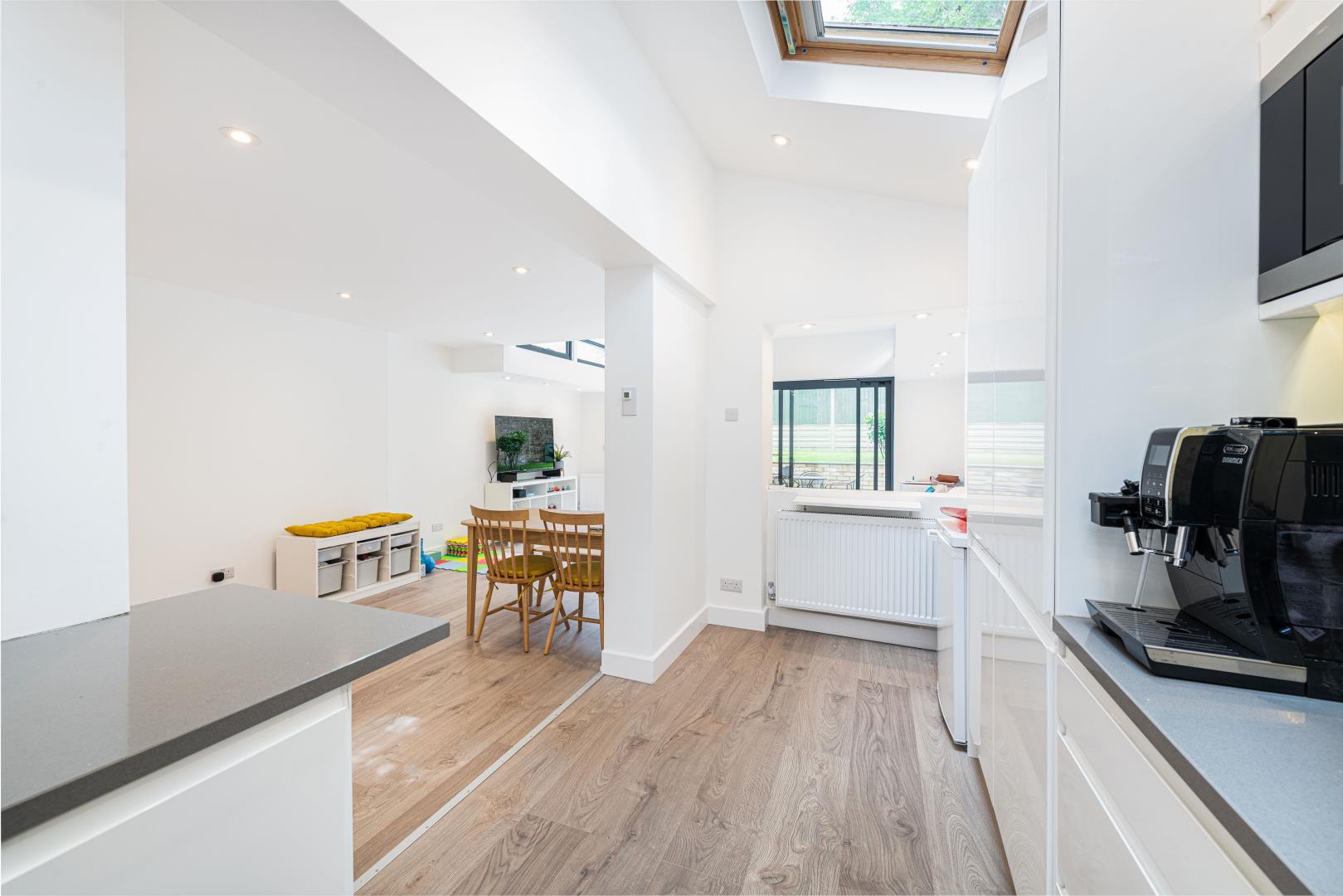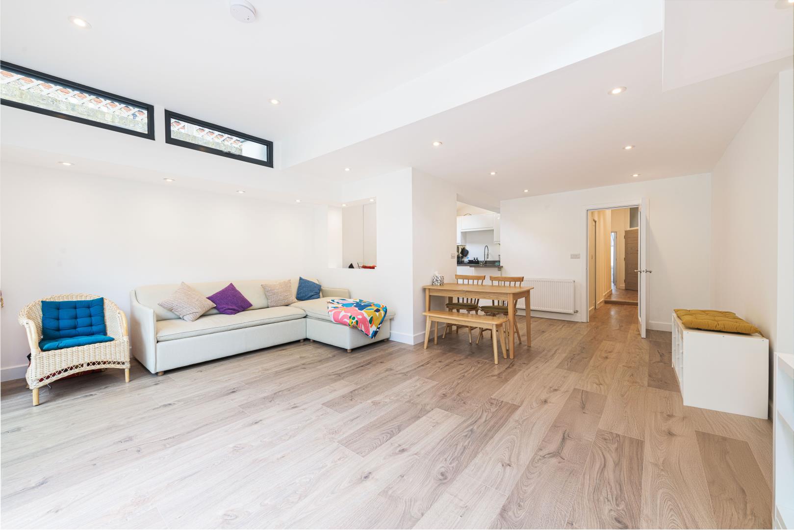 At the back of the property is a huge open plan kitchen/living/dining area (22’7 x 17’10 plus kitchen area) with expansive sliding doors onto a newly landscaped garden. This is a defining feature of the property that makes the most of the space available and creates a wonderful room that explodes with light and vibrancy.