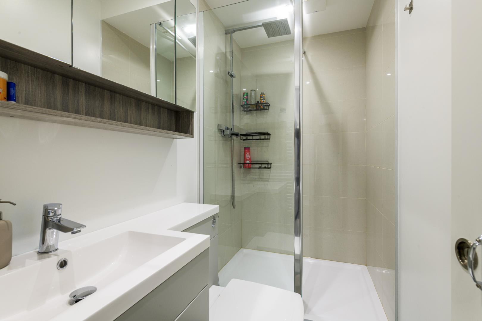 Upon entering the flat there is a hallway that leads to both bedrooms, the largest of which is 14’6 x 12’3. Going back out along the corridor towards the rear of the property one of the two bathrooms is located next to the second bedroom which consists of a large walk-in shower, WC and wash basin.