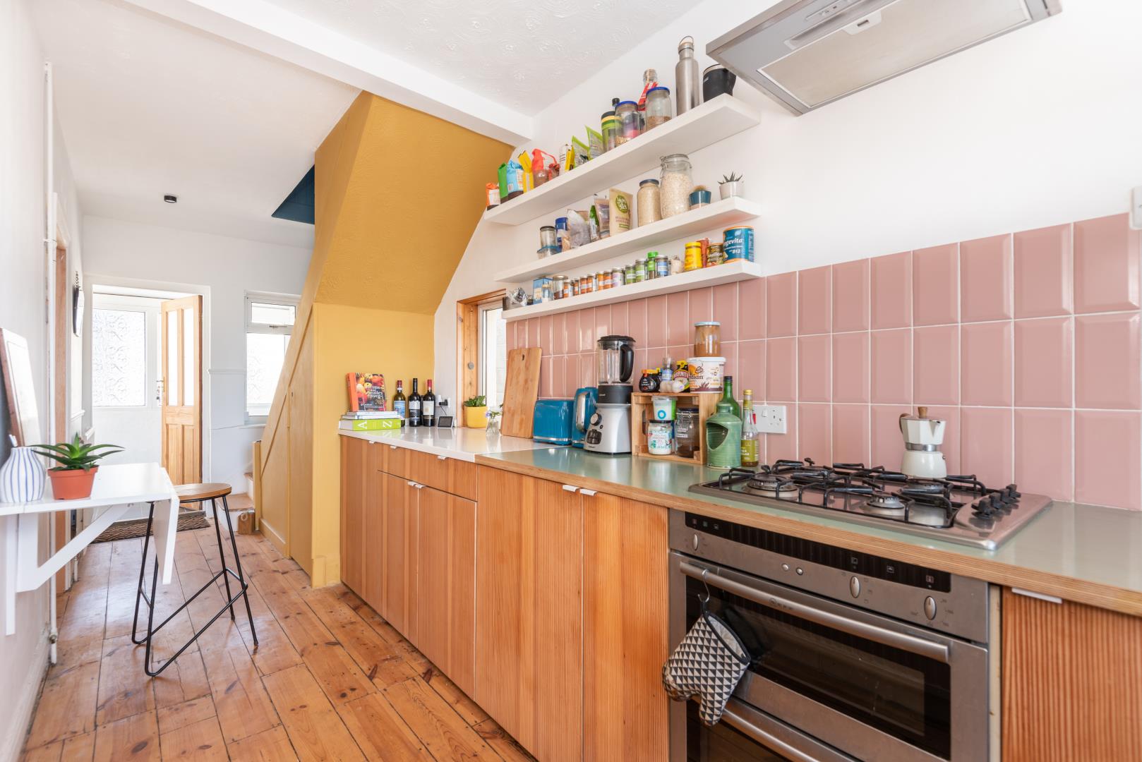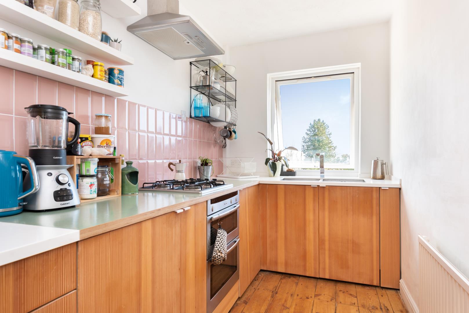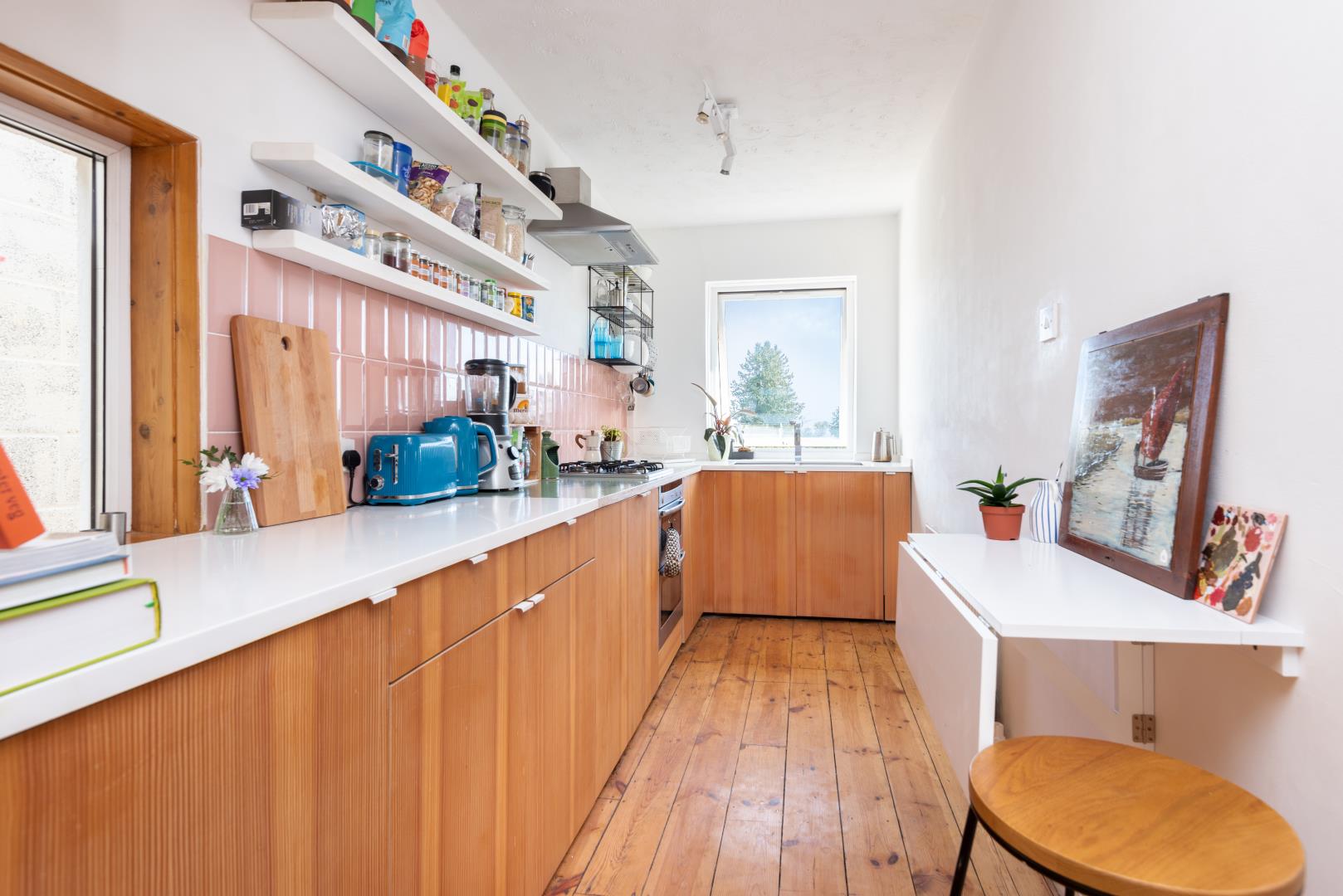 Fitted with a matching range of base units. Including matching breakfast bar. Appliances are Integrated. Appliances by Neff. Counter tops - Solid surface material. Counter tops - Wood. Extractor hood Overhead. Hob - Gas. Washing machine. Rectangular room. Space and plumbing for washing machine. Shelving. Recently Modernised. Wood Flooring. Windows to rear. Windows to side. Window with deep window sill. Spot lights. Hardwood Panelled doors. Low voltage lighting. Central heating radiators.