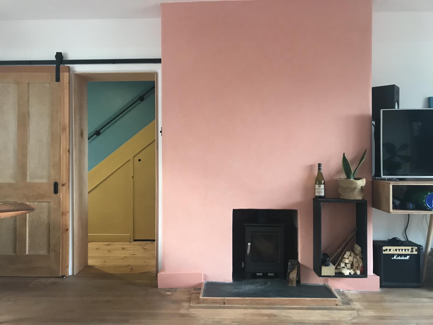 Low voltage lighting. Central heating radiators. Wood burner fire. Solid fuel burner. Wall lights. Pendant lights. Windows to front. Patio door. Sliding door. Door to garden. Wood Flooring. Storage. Shelving. Cupboard. Fitted bookcase. Corner display cabinet. Alcoves with shelving. Rectangular room. Family Room. Lounge/Diner.