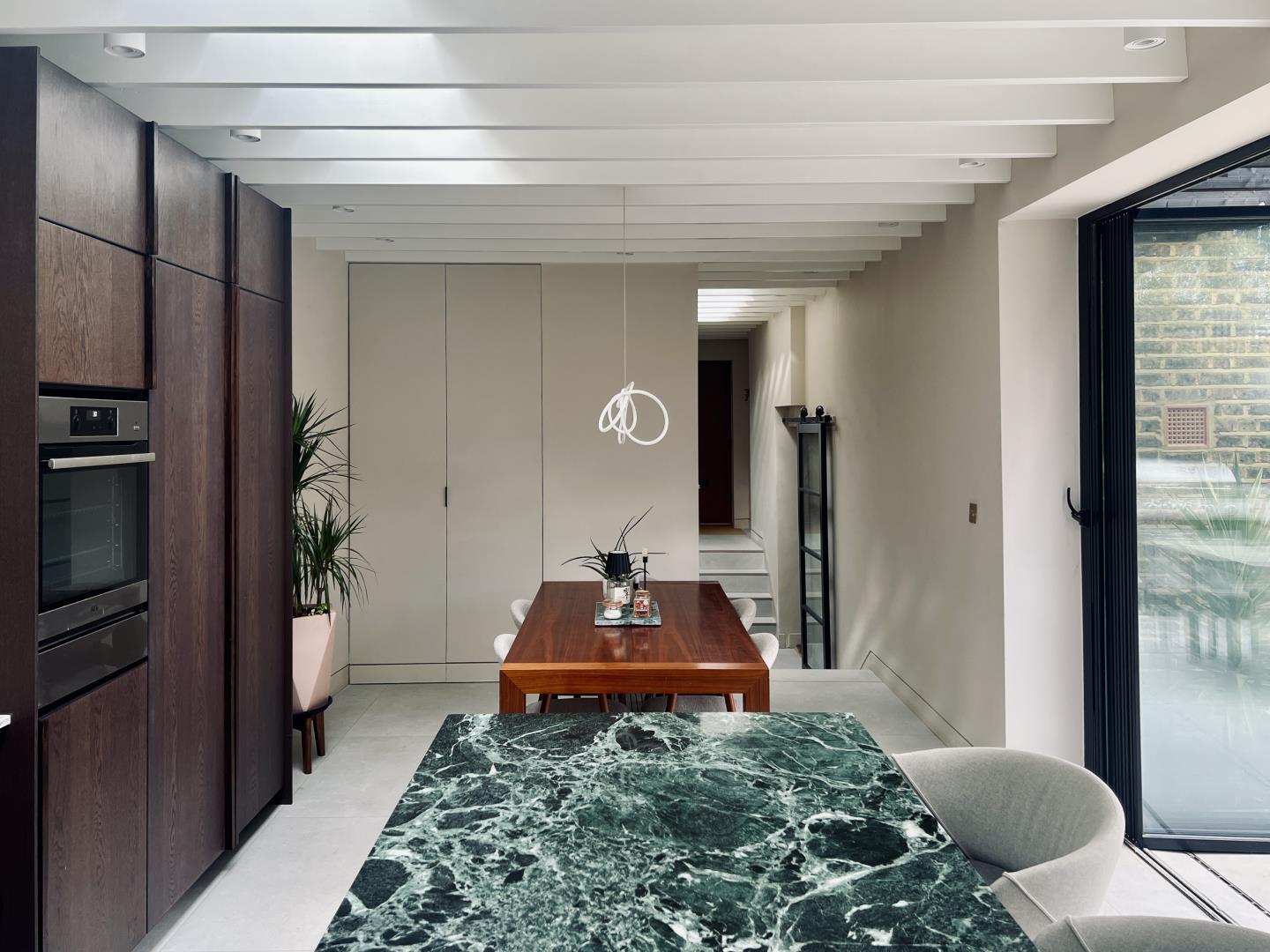 The property has been meticulously refurbished and extended to create a comfortable, light filled home that wraps around the private south facing garden, with off street parking and a private entrance. A stylish kitchen dining room flows out to the terrace and outdoor kitchen. Three good sized bedrooms are accessed from a generous central hallway with garden access. A separate utility and cloak room keep noise and clutter hidden. The flat is located a short walk from Underground (Jubilee), Overground and Thameslink Stations, with Kilburn, West Hampstead and Queens Park all on the doorstep.