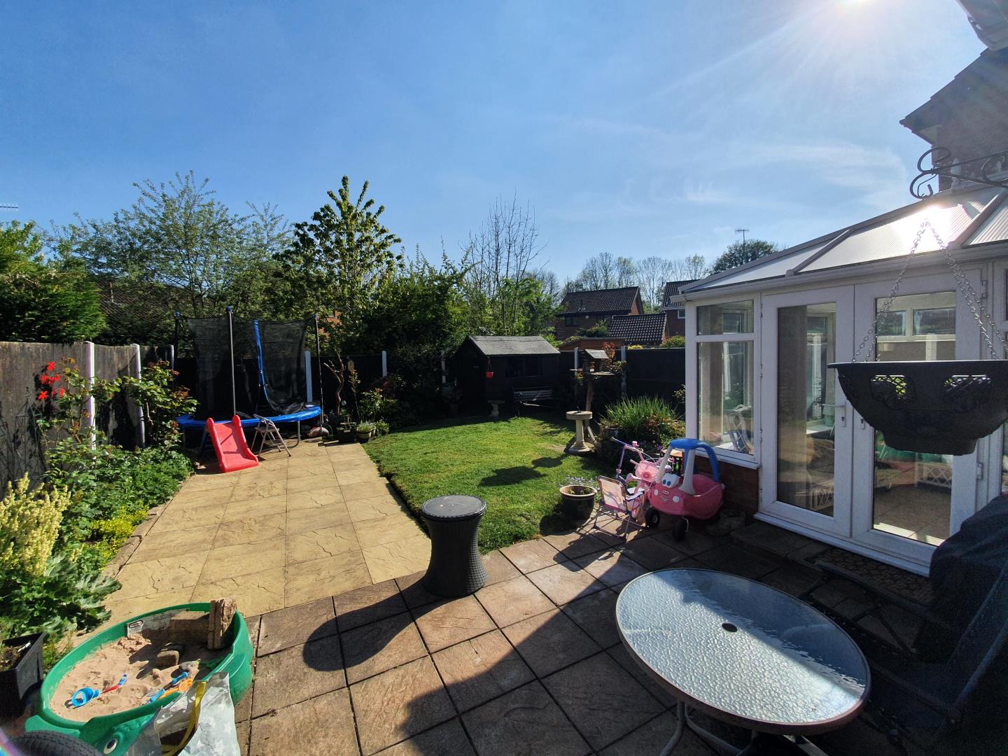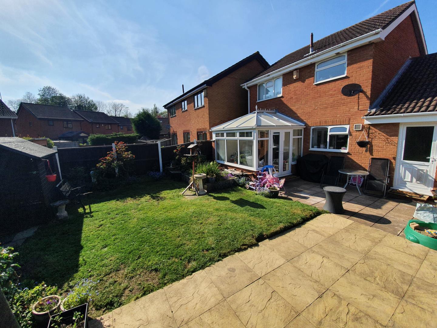 Further details: Down a secluded drive, the house benefits from a double block paved drive plus garage, and lawn with side passageway to rear garden. Garden has a large patio and grassed area. The garage has an electric door, and boarded loft space, and there is potential for extension above the garage as the neighbouring properties have done. There is plenty of storage in the property, with boarded loft space accessible from the upstairs landing. The property is double glazed. The spacious kitchen and dining area has been refurbished, the front master bedroom has a Sharps sliding doors fitted wardrobe. The bathroom has a bath and separate shower. There is also a downstairs WC. No upwards chain.