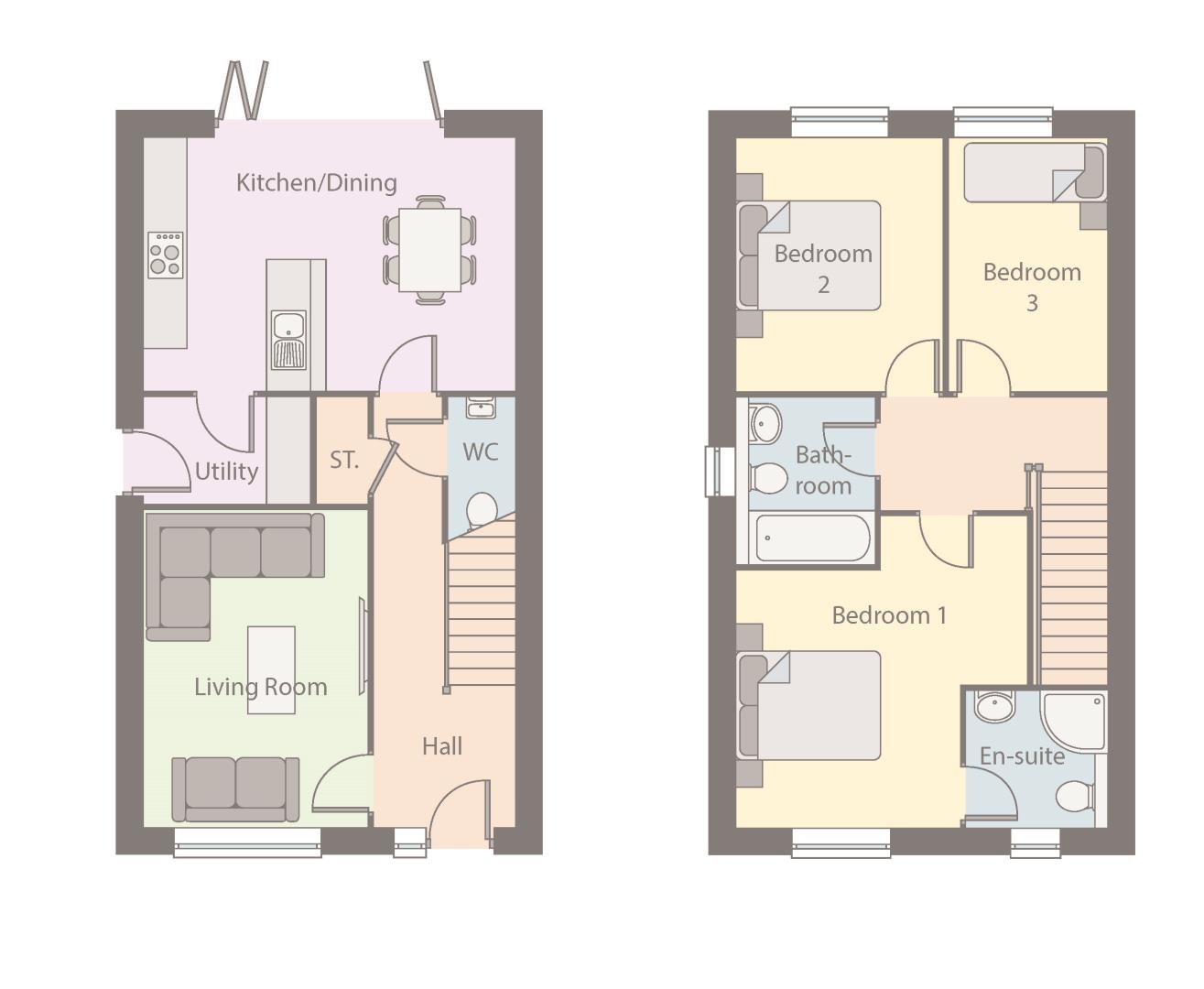 The Hickory is a beautiful new home which is designed to suit couples and families. It features a modern, open-plan kitchen with dining area as well as a handy utility room and WC. Bi-fold doors open from here to the rear garden, making the space perfect for entertaining. The private living room overlooks the front of the property.