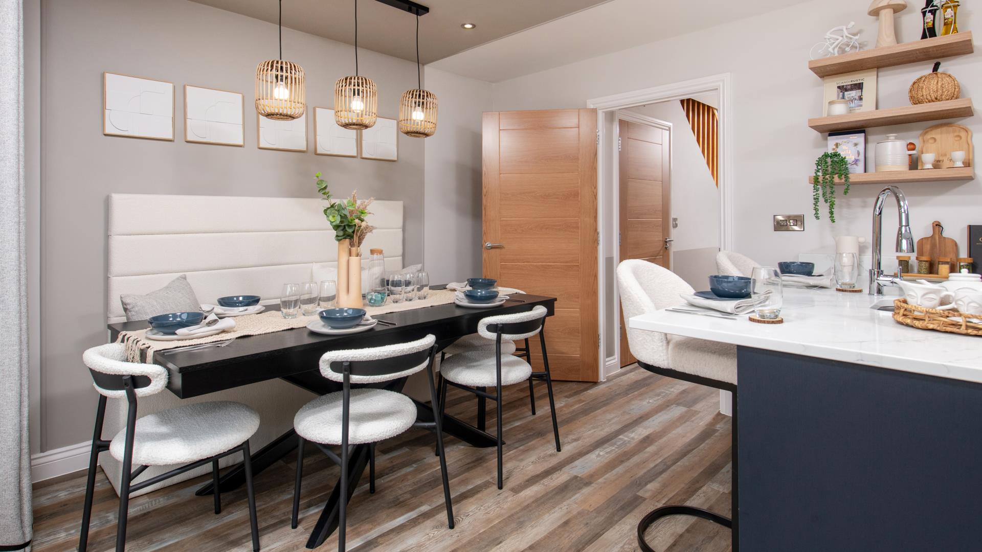 Open plan kitchen and dining area
