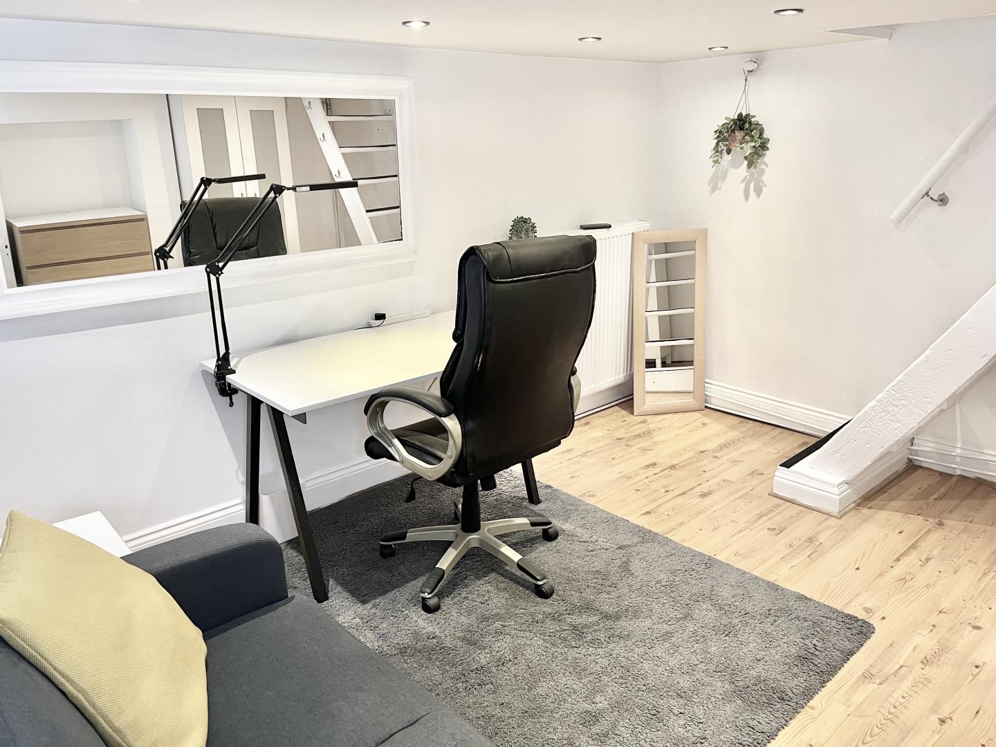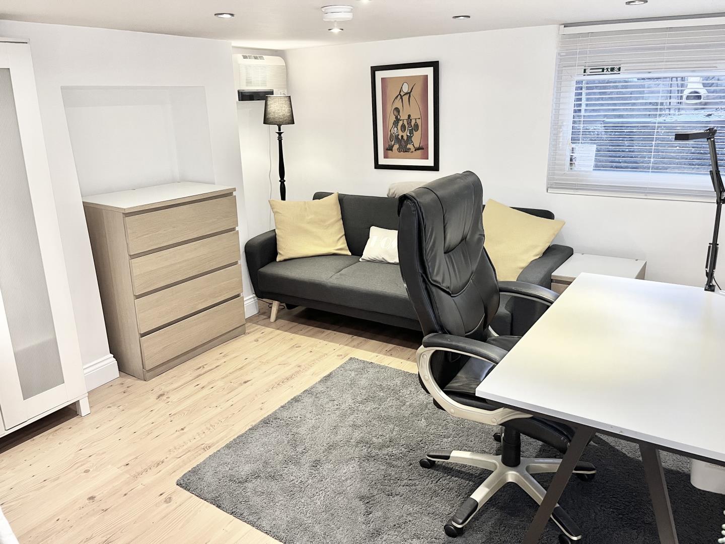 Family Room. Gym. Study. Rectangular room. Recently Modernised. Laminate flooring. Window. Recessed spot lights.