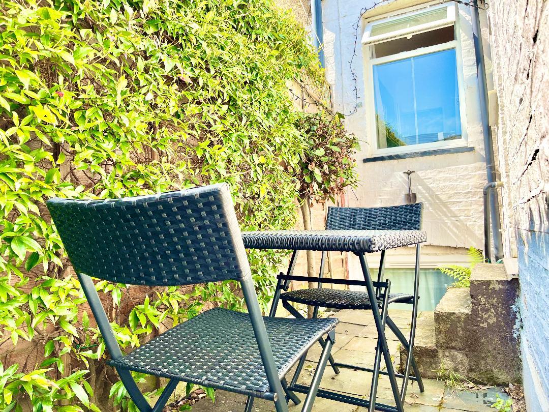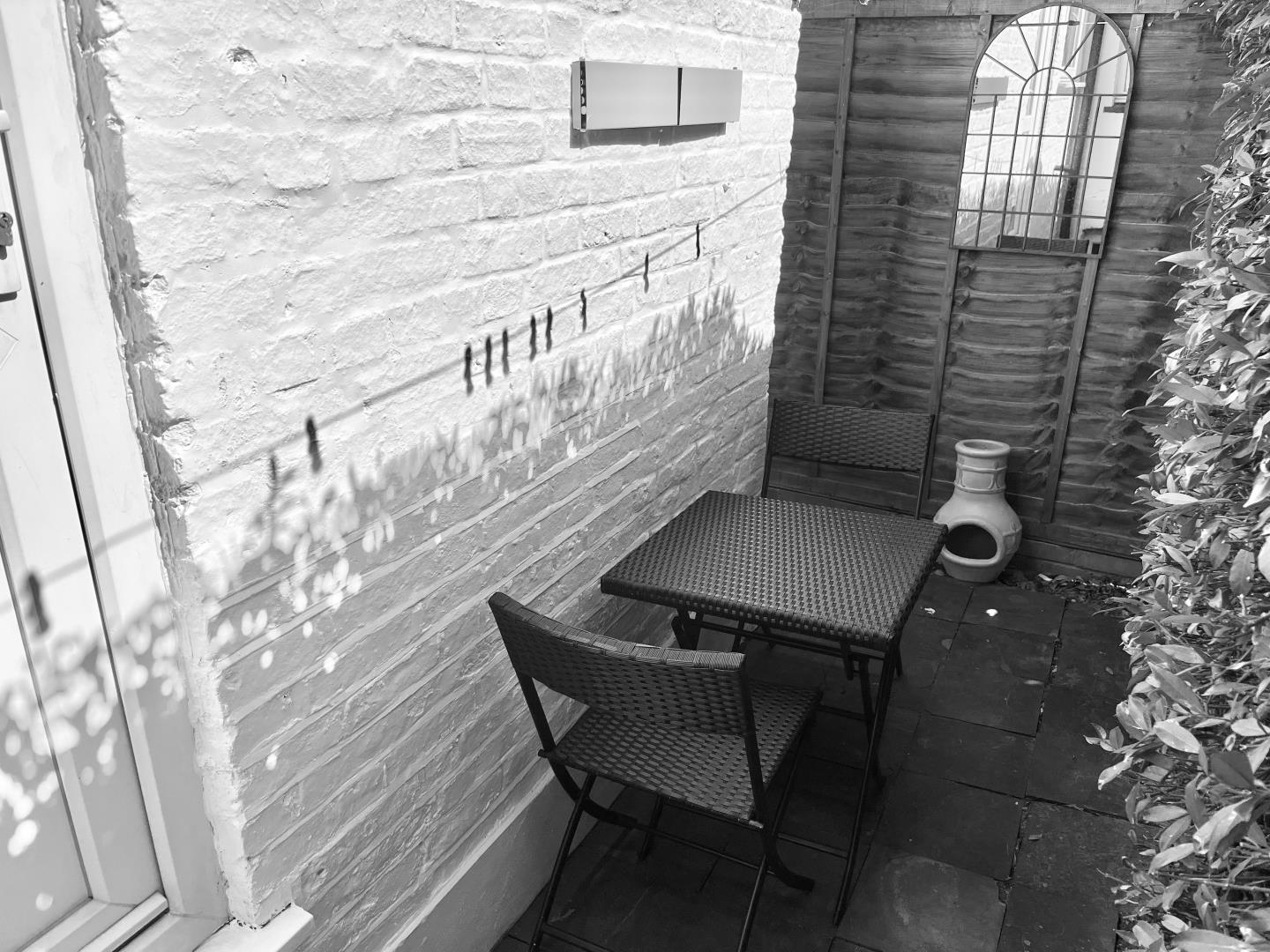 There is a small front garden and rear yard, but no rear garden.