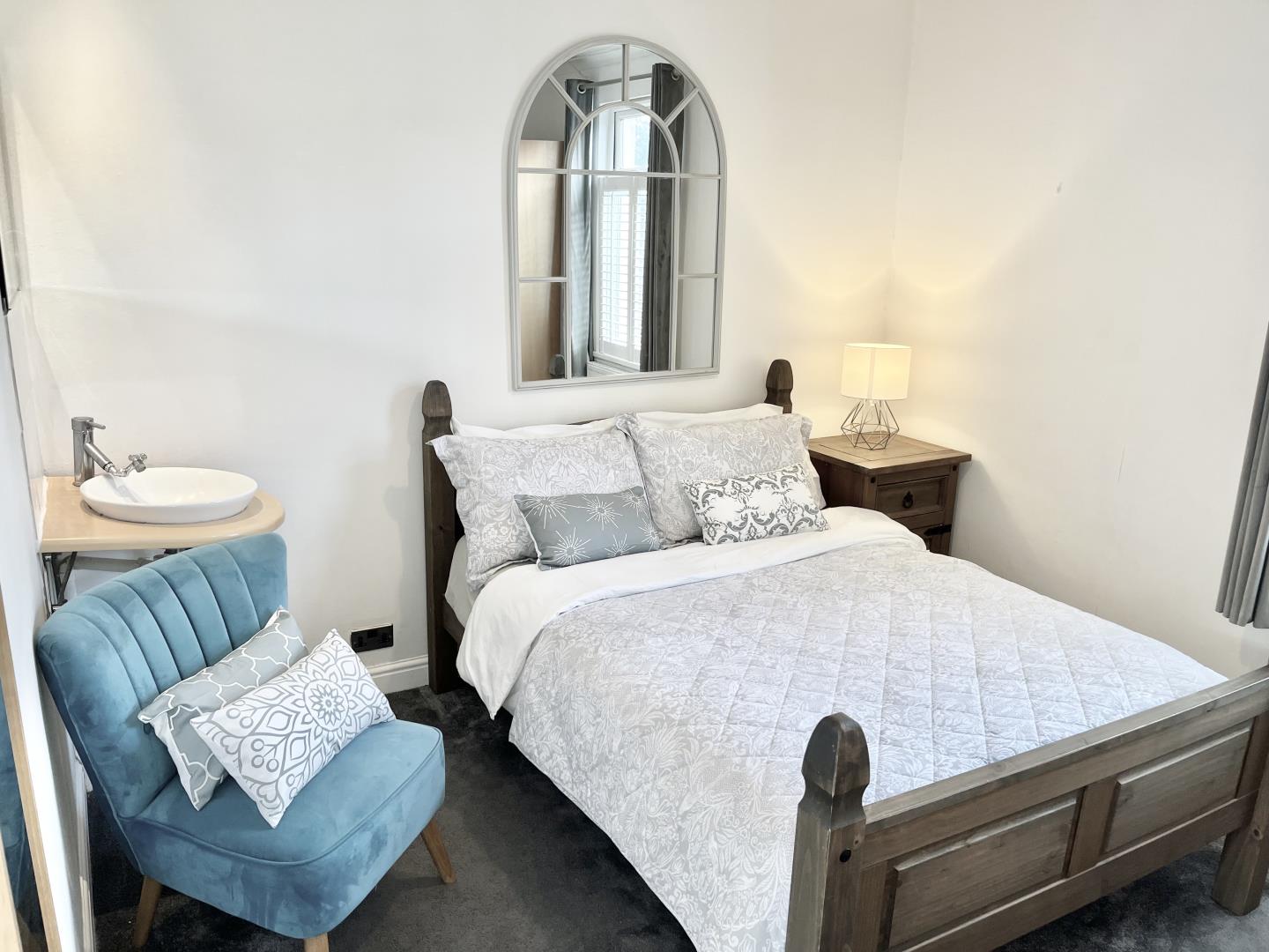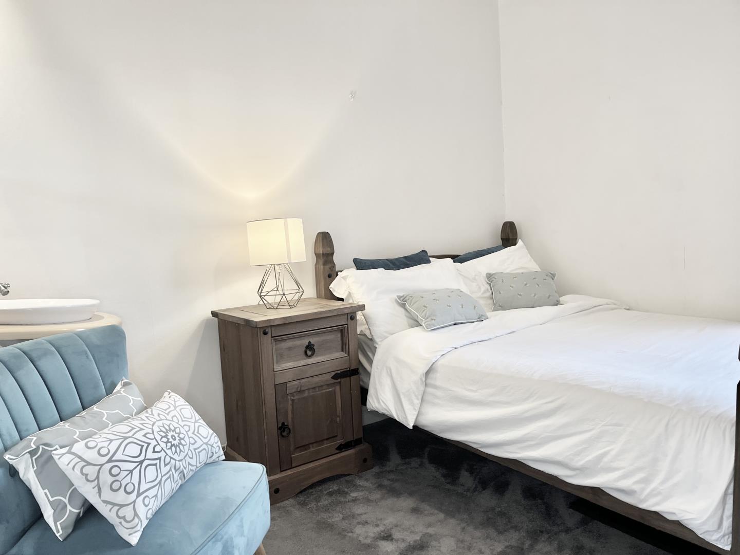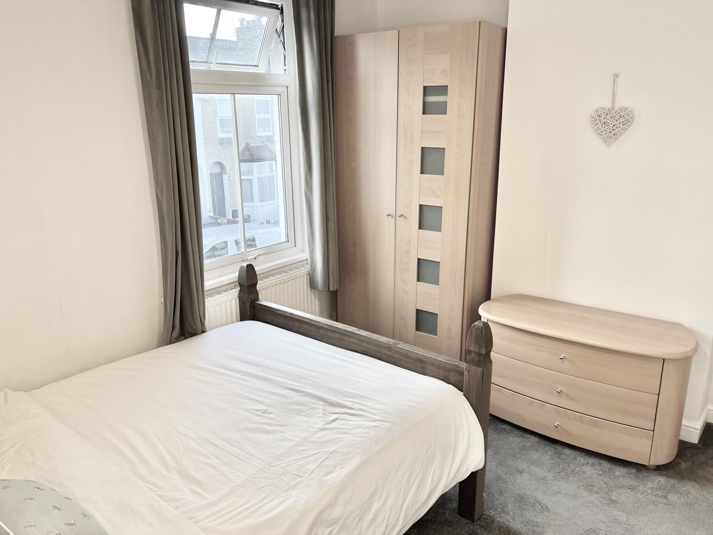 Double Bedroom. Sink. Rectangular room. Fitted carpet. Windows to front. Central heating radiators. Pendant lights.