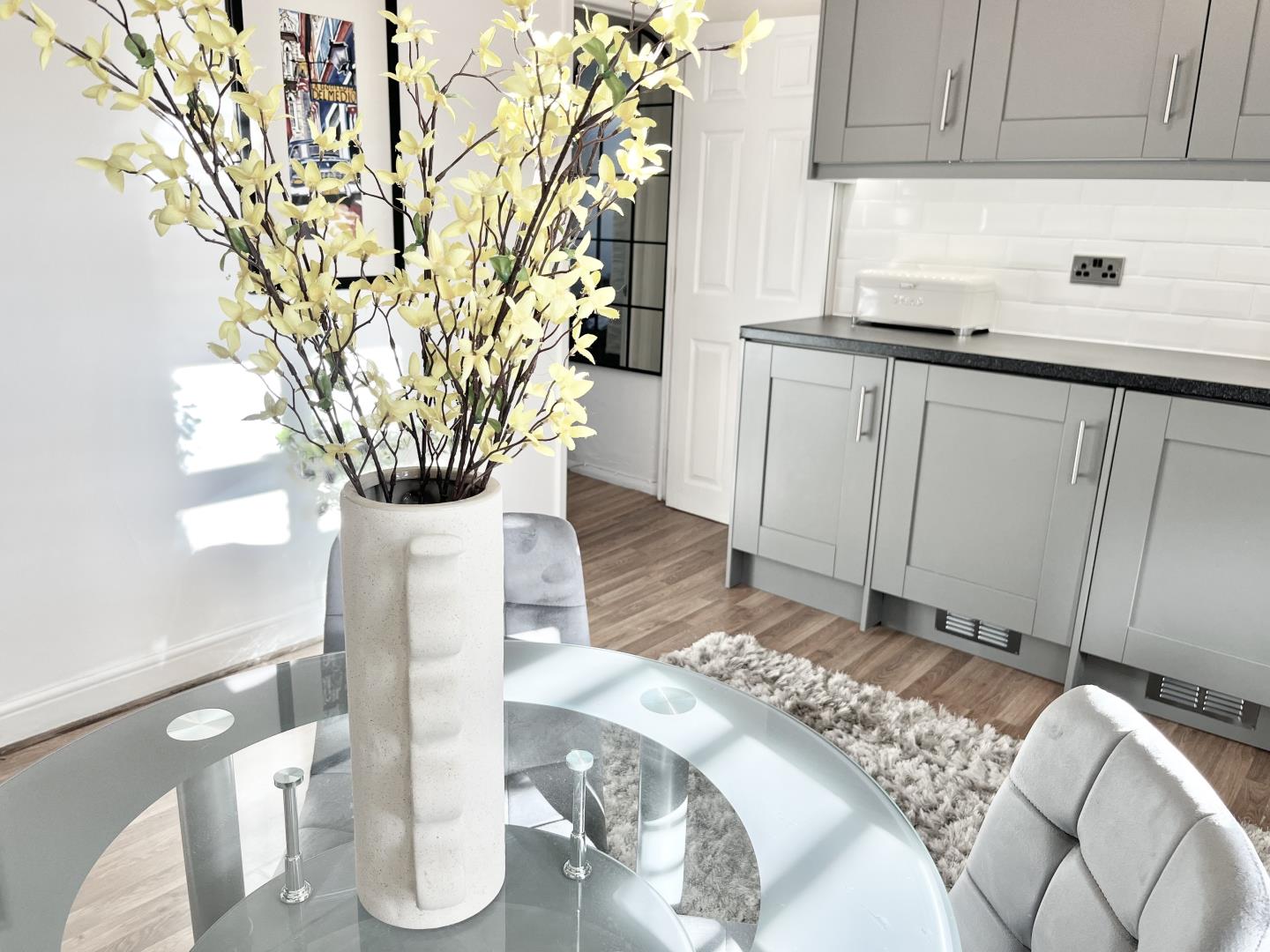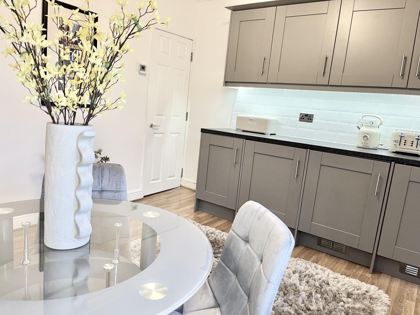 The kitchen-diner is perfect for entertaining with brand new units and integrated dishwasher, fridge and freezer.