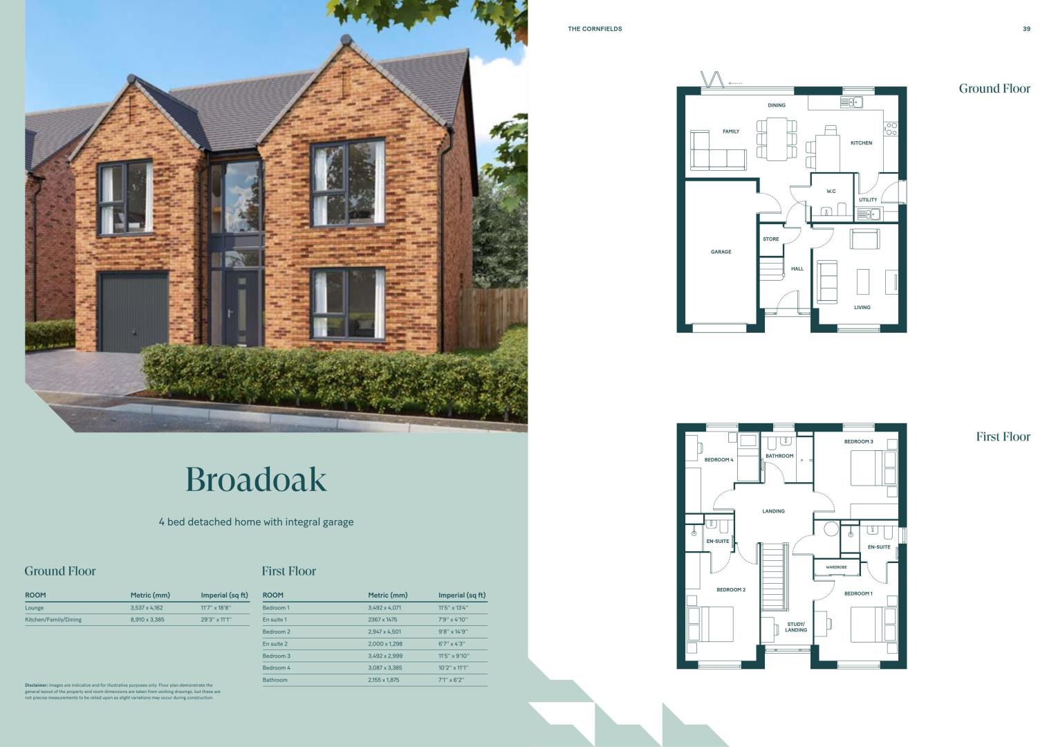 The Broadoak is a modern four-bedroom home with an integral garage. The heart of the home is the open-plan family kitchen diner, while a large living room offers additional relaxation space. Two en-suites and a family bathroom ensure comfort for all.
