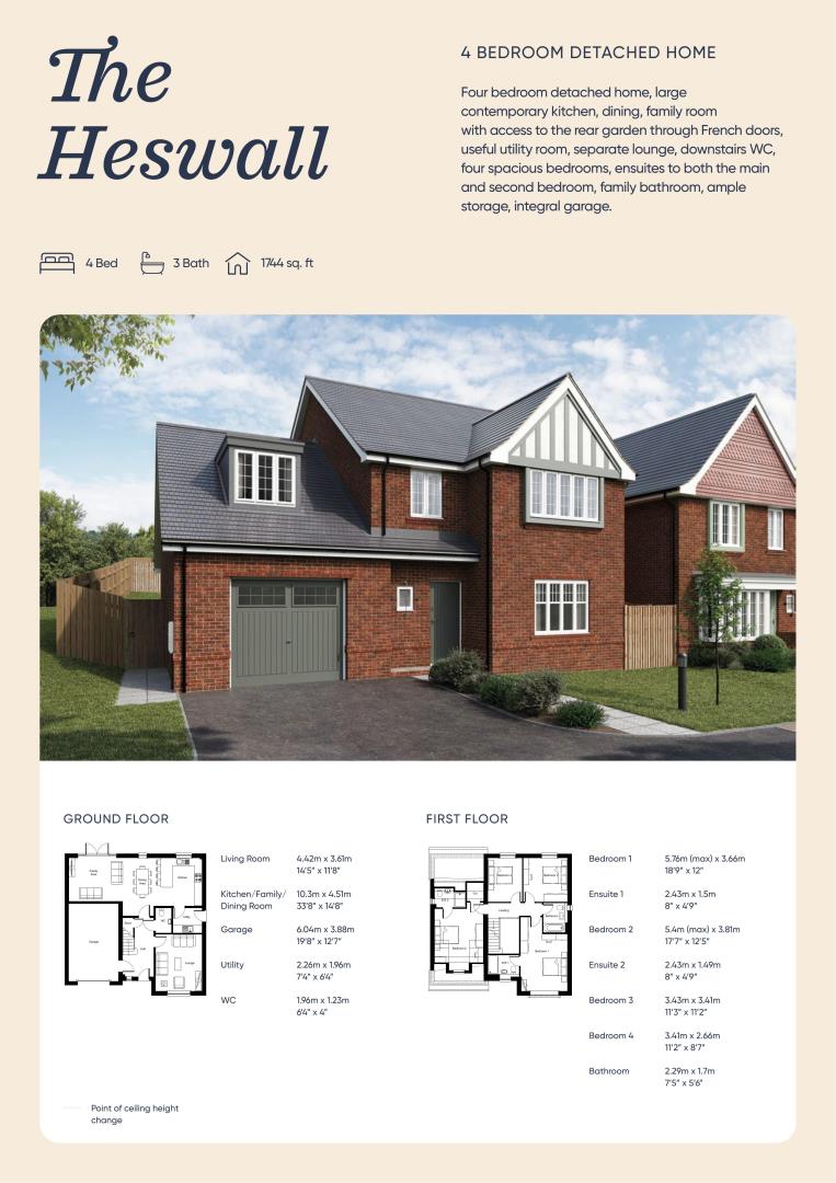 The Heswall<br/><br/>4 BEDROOM DETACHED HOME<br/><br/>Four bedroom detached home, large contemporary kitchen, dining, family room with access to the rear garden through French doors, useful utility room, separate lounge, downstairs WC, four spacious bedrooms, ensuites to both the main and second bedroom, family bathroom, ample storage, integral garage.<br/><br/>OUR MOBBERLEY SHOW HOME IS NOW OPEN<br/><br/>Whittle Rise is Eccleston Homes' latest distinctive collection of homes. With just 23 properties in a wide range of characterful elevations, including Farmstead, Village and Arts and Crafts, across 3 character areas. It is our first development to utilise Air Source Heat Pumps. Situated on the rural belt north of Manchester, it sits in the heart of a well-connected community ideal for families, young professionals, and retirees alike.<br/><br/>Here at Eccleston Homes we build characterful energy efficient homes with all the innovative and contemporary features you'd expect in a modern home. We take pride in the quality of our developments and the service we offer to you. From your very first visit, to receiving your keys and beyond, we are committed to delivering you a friendly, simple and informative journey and your new home built to our highest standards.
