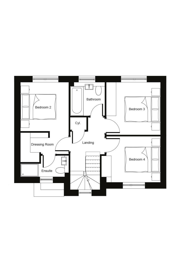 Living/dining room have access to the rear garden through French doors, feature window to staircase, useful utility room. Downstairs WC, three spacious bathrooms, ensuites to both the main and second bedroom, family bathroom, ample storage. See sales consultant for plot specific parking details.