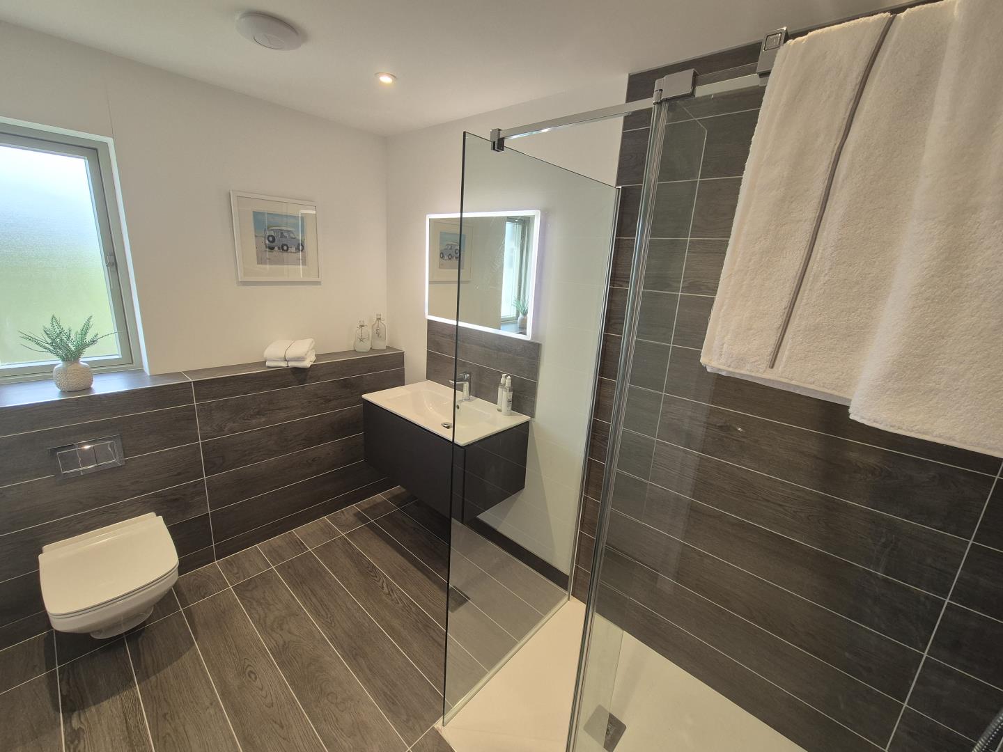Spacious. Underfloor heating. Storage. Space and plumbing for washing machine. Space and plumbing for tumble dryer. Rectangular room. Porcelain Tiles to floor. Door to side. Windows to rear. Recessed spot lights.