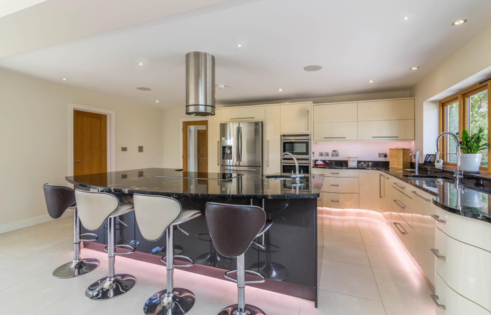 Utility RoomFitted with a matching range of base & eye level units. Counter tops - Granite. Rectangular room. Underfloor heating. Space and plumbing for washing machine. Space and plumbing for tumble dryer. Porcelain Tiles to floor. Rear door. Spot lights. Down lighting.KitchenFitted with a matching range of base & eye level units. Including matching island unit. Appliances by Bosch. Counter tops - Granite. Hob - Electric. Extractor hood Overhead. Rectangular room. Underfloor heating. Space and plumbing for dishwasher. Porcelain Tiles to floor. Tri-fold door. Door to garden. Windows to front. Skylight. Full height window. Down lighting. Pendant lights.BathroomEn-suite Bathroom. Free standing bath. Walk-in shower. Irregular shaped room. Underfloor heating. Porcelain Tiles to floor. Vaulted Ceiling. Windows to rear. Wall lights. Down lighting. Dimmer controlled lights. Low voltage lighting.BedroomMaster Bedroom. Walk-in wardrobe. Unusual shaped room. Fitted carpet. Vaulted Ceiling. Patio door. French door. Full height window. Cat 6 Network point. TV aerial point. Wall lights. Low voltage lighting. Down lighting. Dimmer controlled lights.BedroomDouble Bedroom. Rectangular room. Underfloor heating. Fitted carpet. Windows to rear. Cat 6 Network point. Wall lights. Down lighting.BathroomJack & Jill Bathroom. Rain fall shower. Shaver point. Walk-in shower. Rectangular room. Porcelain Tiles to floor. Sloping ceiling. Windows to rear. Down lighting. Low voltage lighting.BedroomDouble Bedroom. En-suite. Rectangular room. Fitted wardrobes. Fitted carpet. Sloping ceiling. Windows to rear. Low voltage lighting. Down lighting.BedroomDouble Bedroom. Square room. Fitted wardrobes. Fitted carpet. Windows to rear. Low voltage lighting. Down lighting.BedroomDouble Bedroom. Square room. Fitted carpet. Windows to front. Cat 6 Network point. Down lighting. Low voltage lighting.Living RoomLounge. Sitting area. Rectangular room. Underfloor heating. Fitted carpet. Tri-fold door. Door to garden. Inglenook fireplace. TV aerial point. Cat 6 Network point. Recessed spot lights. Low voltage lighting. Down lighting.Family Room/Study/BedroomCinema Room. Gym. Sitting Room. Snug. Rectangular room. Shelving. Recently Modernised. Porcelain Tiles to floor. Double bi-fold door. TV aerial point. Cat 6 Network point. Internet point. Wall lights. Low voltage lighting. Down lighting. Dimmer controlled lights.BathroomBathtub. Shaver point. Shower Room. Square room. Underfloor heating. Porcelain Tiles to floor. Recessed spot lights. Low voltage lighting. Down lighting.
