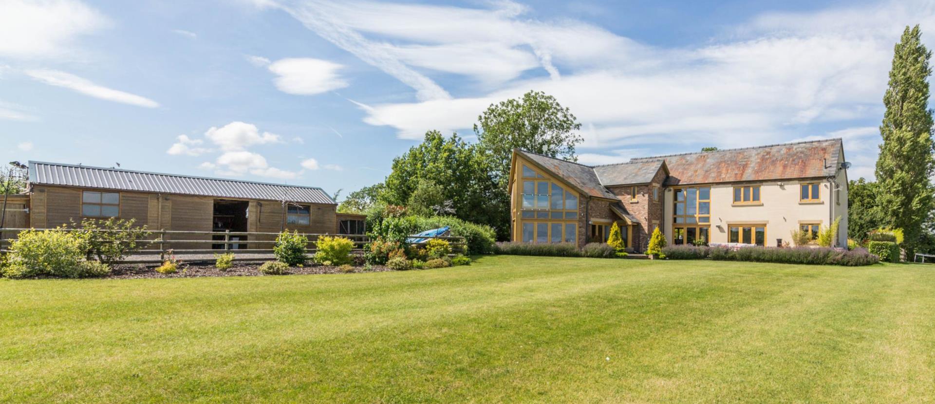 • Large Open Plan Family Room/Breakfast Room/Kitchen • Superb Games Room/Entertainment Room & Sitting Room • Stunning Master Suite with En Suite & Dressing Room • Five Further Bedrooms, Bathroom and Jack & Jill En Suite • Extensive Established Gardens & Grounds - 2.34 Acres • Upspoilt Views Across Open Countryside • Stable Yard with Workshop/Store • Well Managed Grass Meadow • Ample Car Standing and Turning Space