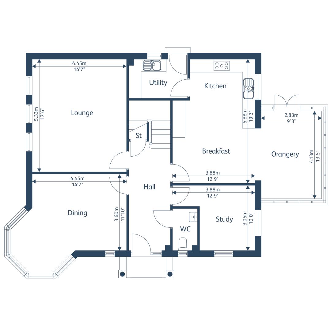 5 Bedroom colonial style house with study & conservatory on the ground floor in addition to the lounge, dining room & breakfast kitchen. The first floor having three en-suite bedrooms and the two 2nd floor bedrooms sharing a family bathroom. A truly magnificent home with a detached double garage