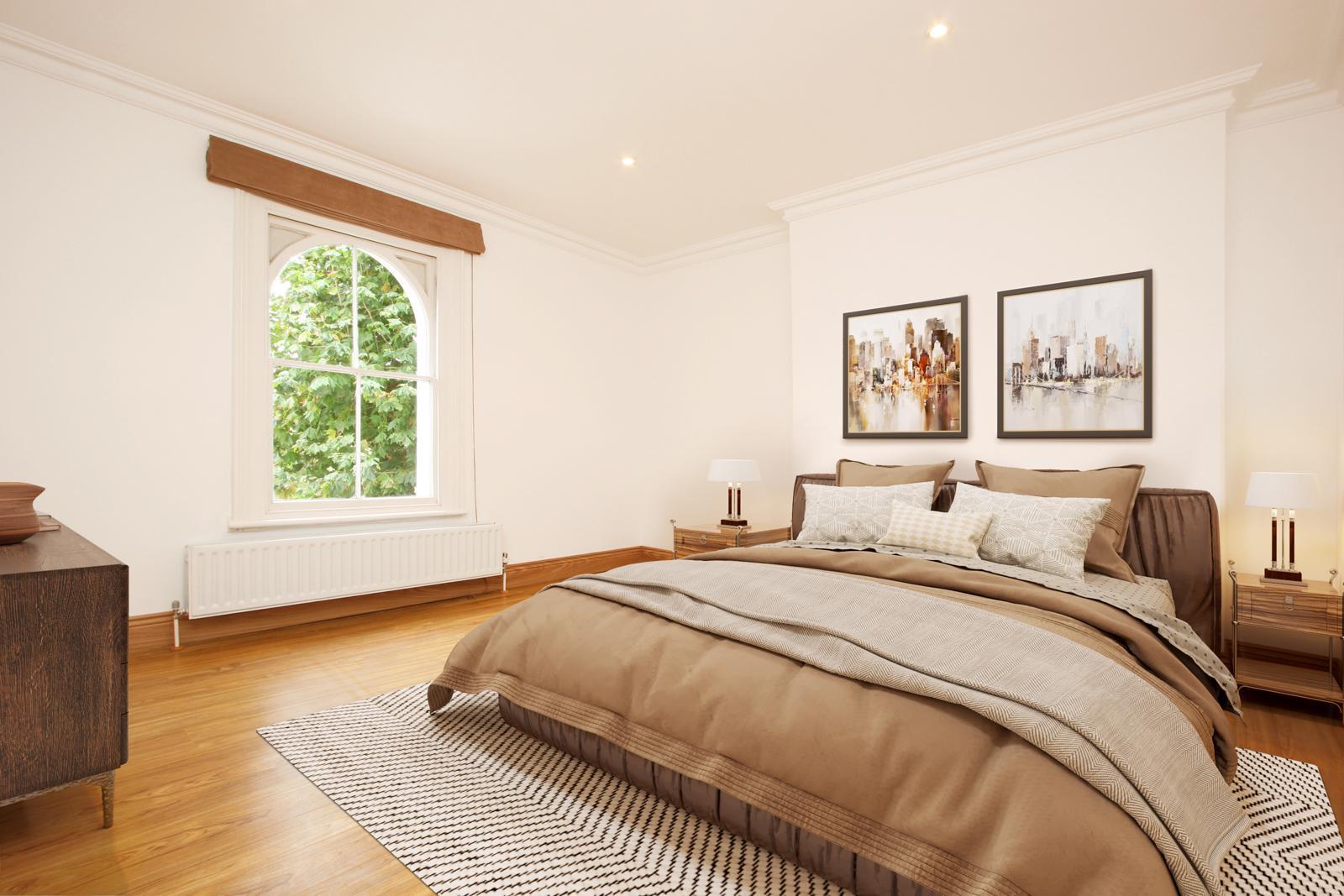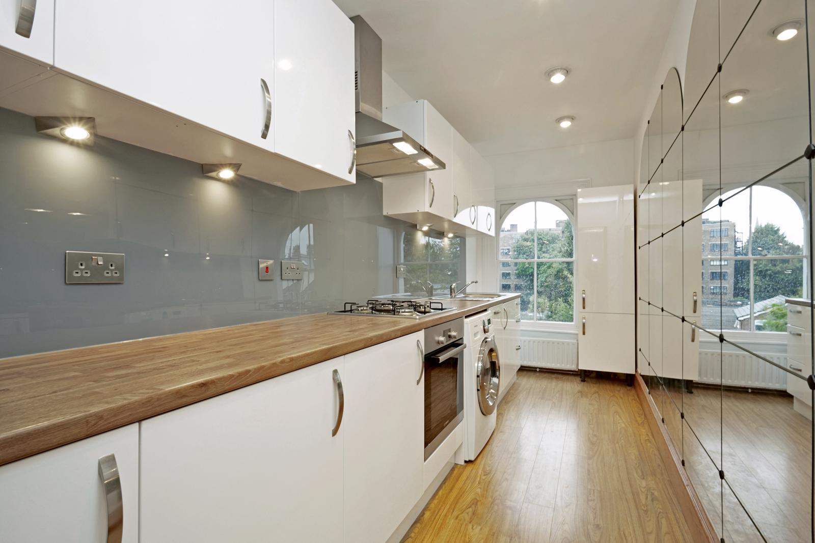 Large 593 sq. ft. one bedroom apartment in one of Surbiton’s premier river roads, set on the top floor of an elegant period property, 1/3 of a mile from station and town centre. It's a stylish apartment with a luxury feel incorporating down lighting and arch sash windows. The bathroom has a mains fed shower with rainfall shower head. The kitchen is fitted with white high gloss units and integrated appliances (including dishwasher). The property has hard-wired smoke alarms and energy efficient thermostatically controlled gas central heating with 'A' rated Worcester Bosch condensing boiler. Comes with the benefit of an unusually large garage/workshop with power, lighting and storage. To the front of the garage is an additional off-street parking space. The property is within a minutes’ walk of Maple Road, a tree-lined street that hosts a fabulous mix of independent shops, pubs and restaurants. Unfurnished. Available 16th April.