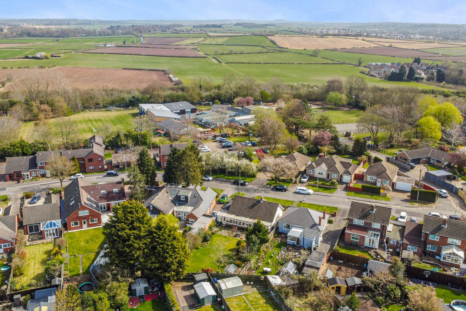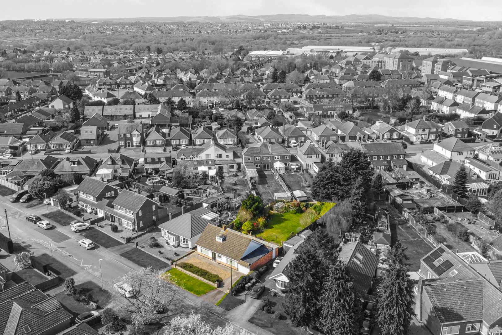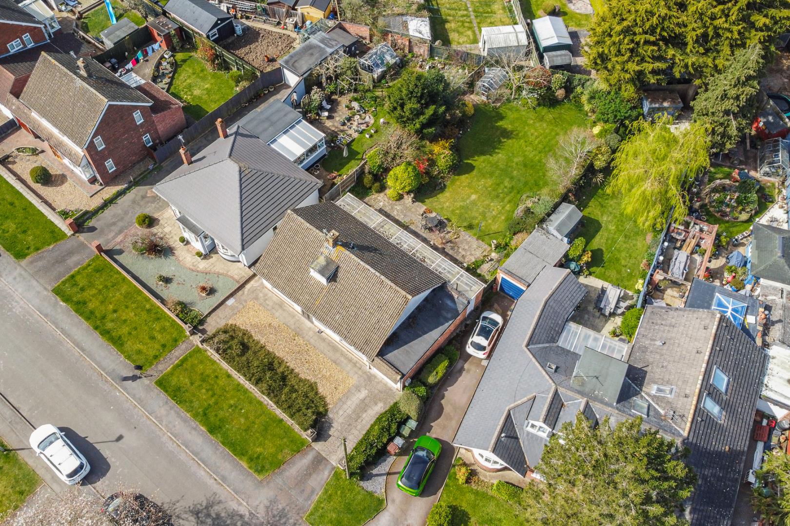 • Expansive rear and side gardens, beautifully maintained with lawns, greenhouse, mature shrubs, and planting.