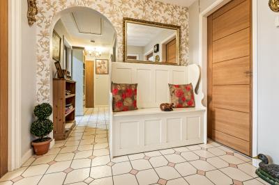 A spacious and inviting hallway with tiled flooring and access to the majority of rooms.