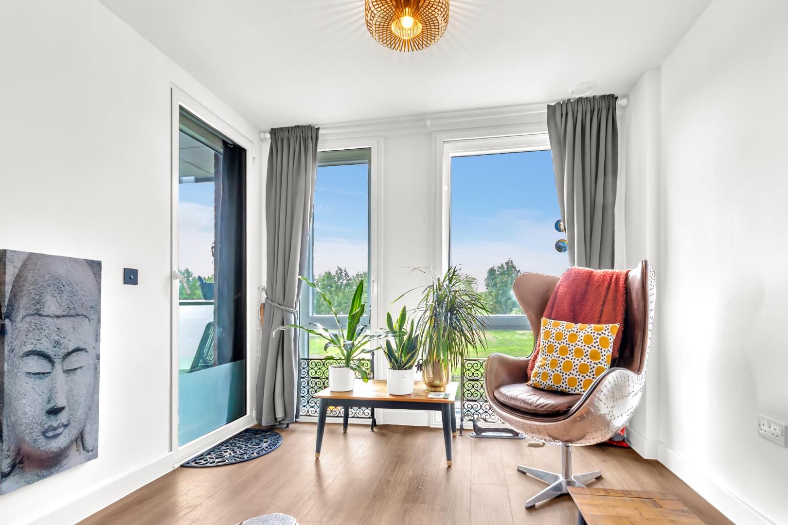 To the middle of the three bedrooms is the guest bedroom/ study, this room also has a window looking onto the balcony/ Finsbury Park.