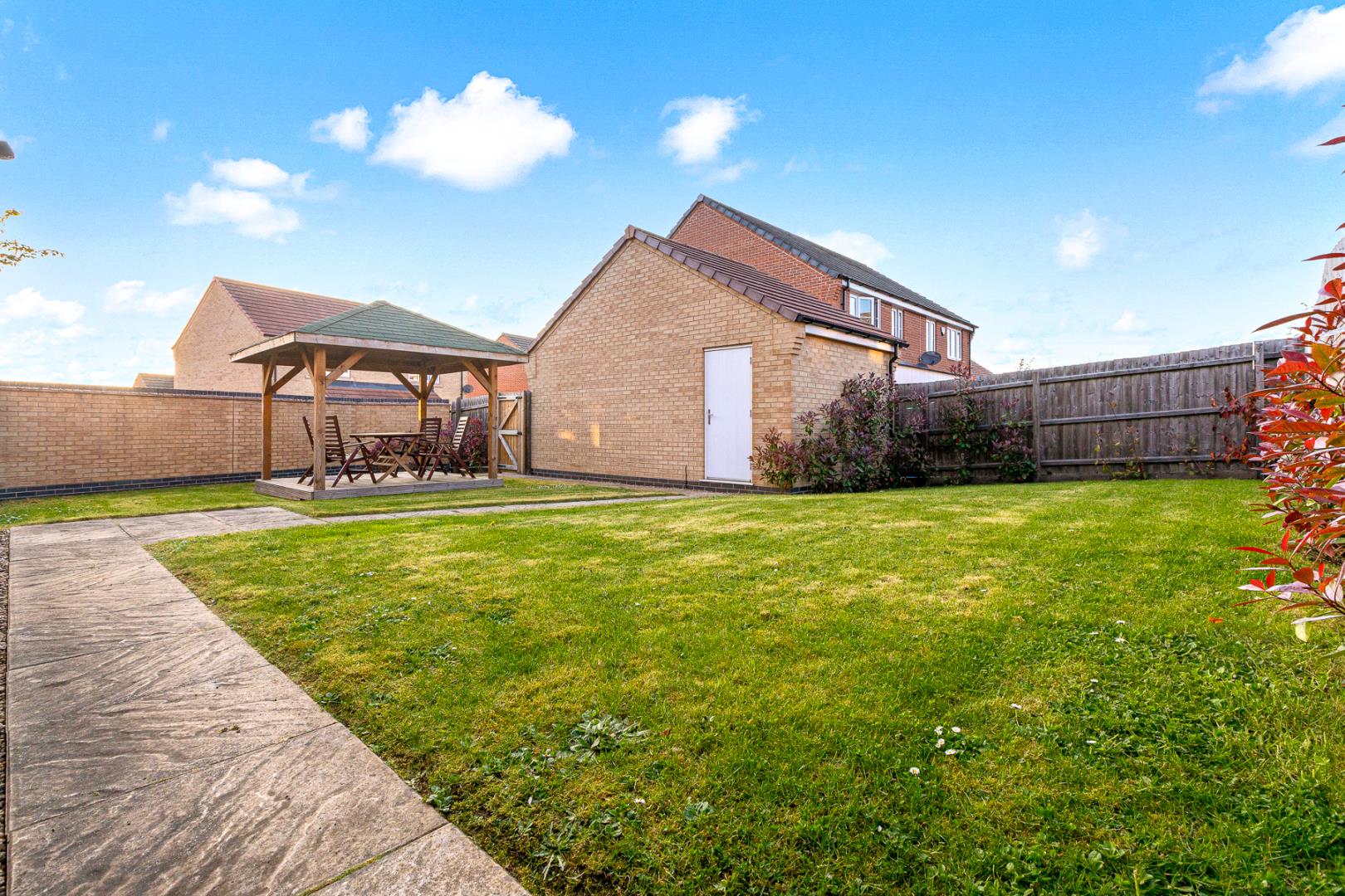 Located in the popular Leicestershire area of Thurnby, this beautifully presented three-bedroom detached home sits on a private corner plot and offers stylish, contemporary living. Built around six years ago by the well-regarded Jelson Homes, the property is known as The Linnet and has been exceptionally well maintained by the current owners.<br/><br/>The ground floor features a spacious dual-aspect lounge and dining room, filled with natural light thanks to multiple windows and French doors that open directly onto the rear garden. Spanning almost 24 feet long, this versatile space is ideal for relaxing and entertaining, with ample room for large sofas and a family dining area.<br/><br/>The modern kitchen enjoys views of the leafy rear garden and offers a well-designed space for cooking and everyday living. It is fitted with wood-effect worktops and stylish grey wall and base units, along with integrated appliances including an Electrolux dishwasher, washer/dryer, fridge freezer, AEG fan-assisted oven, and a four-burner gas hob.<br/><br/>To the rear of the property is a generously sized garden, mainly laid to lawn and bordered by mature shrubs for privacy. A charming wooden-style gazebo, added by the current owners, creates a perfect spot to enjoy sunsets and summer evening meals outdoors.<br/><br/>The home also benefits from a spacious garage, complete with power and lighting, offering excellent potential for conversion into a home office, gym, or workshop. Alternatively, it provides ample storage or secure parking. A private driveway offers additional off-road parking for one vehicle.<br/><br/>Upstairs, the main bedroom overlooks the front of the property and comfortably accommodates a double bed, bedside units, dressing table, and freestanding wardrobes. It also boasts a modern en-suite shower room with a tiled shower cubicle, thermostatic shower, WC, and wash hand basin.<br/><br/>The second bedroom is also a well-proportioned double, with views to the front and plenty of space for wardrobes and other furniture. The third bedroom, overlooking the rear, is perfect as a nursery, home office, or guest room.<br/><br/>The family bathroom is fully tiled and comprises a WC, wash hand basin, and bathtub with a thermostatic shower over, glass screen, and heated towel rail.<br/><br/>This is a rare opportunity to purchase a move-in-ready, detached home in a peaceful and desirable location, not overlooked and full of natural light and charm. If you're looking for a property that combines modern style with practical living, this home is a must-see.