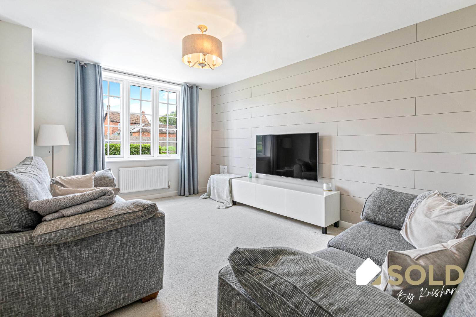 Spacious Living Room With Stylish Feature Wall Panelling