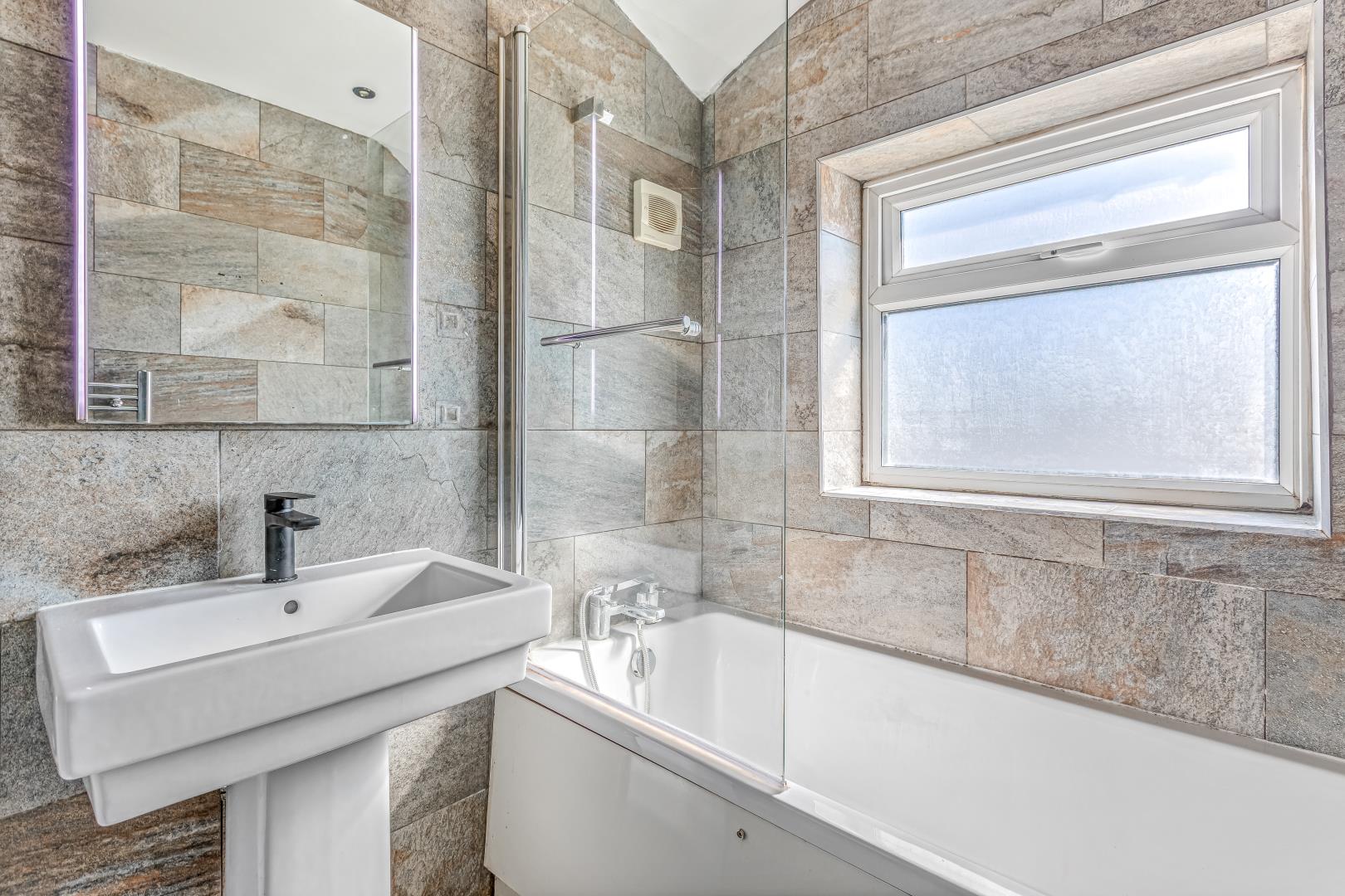 Stylish Fully Tiled Family Bathroom