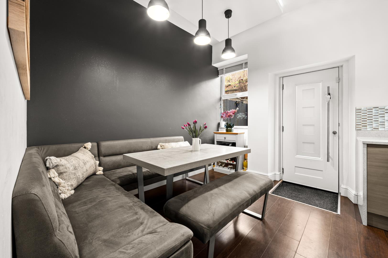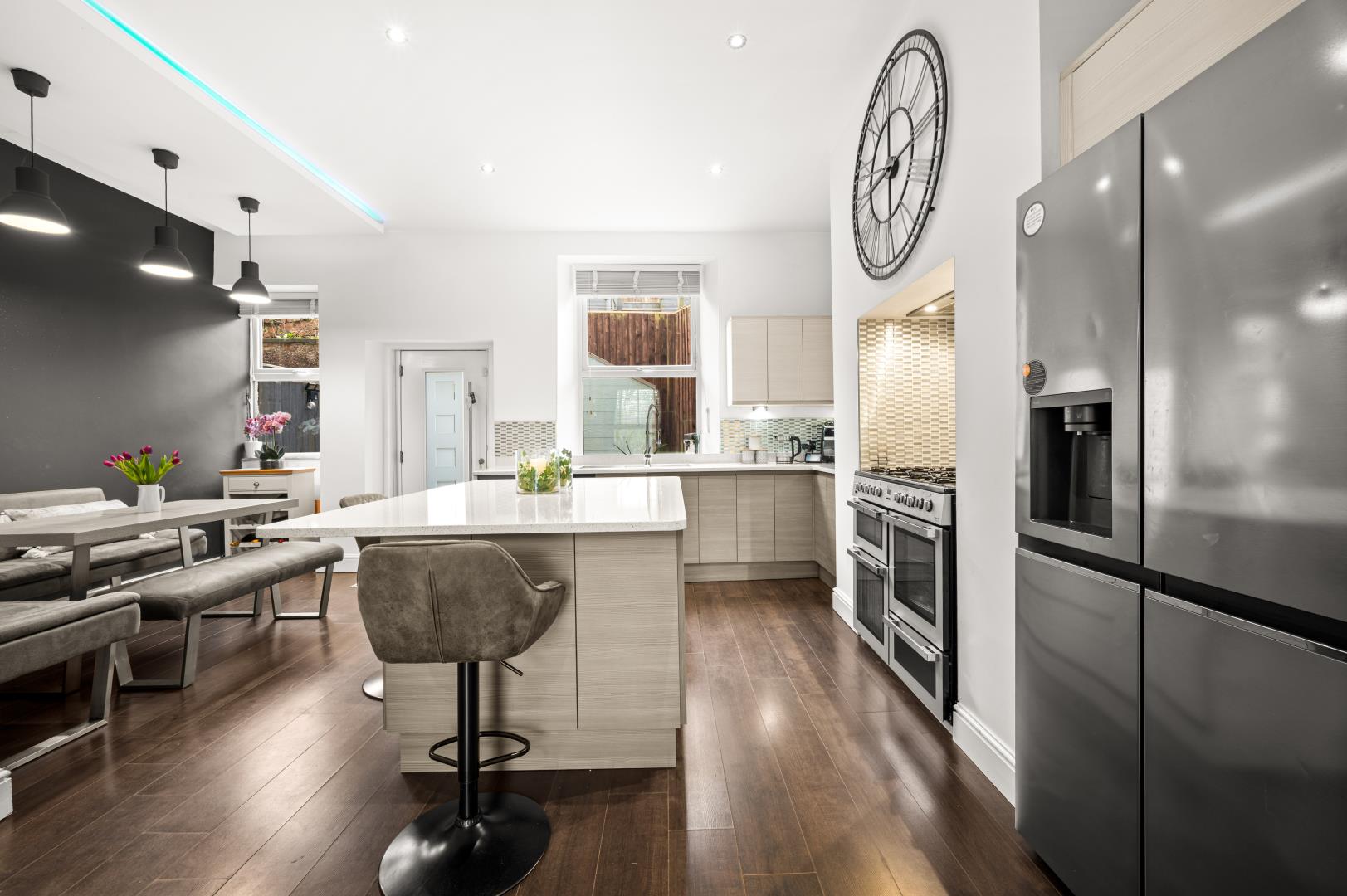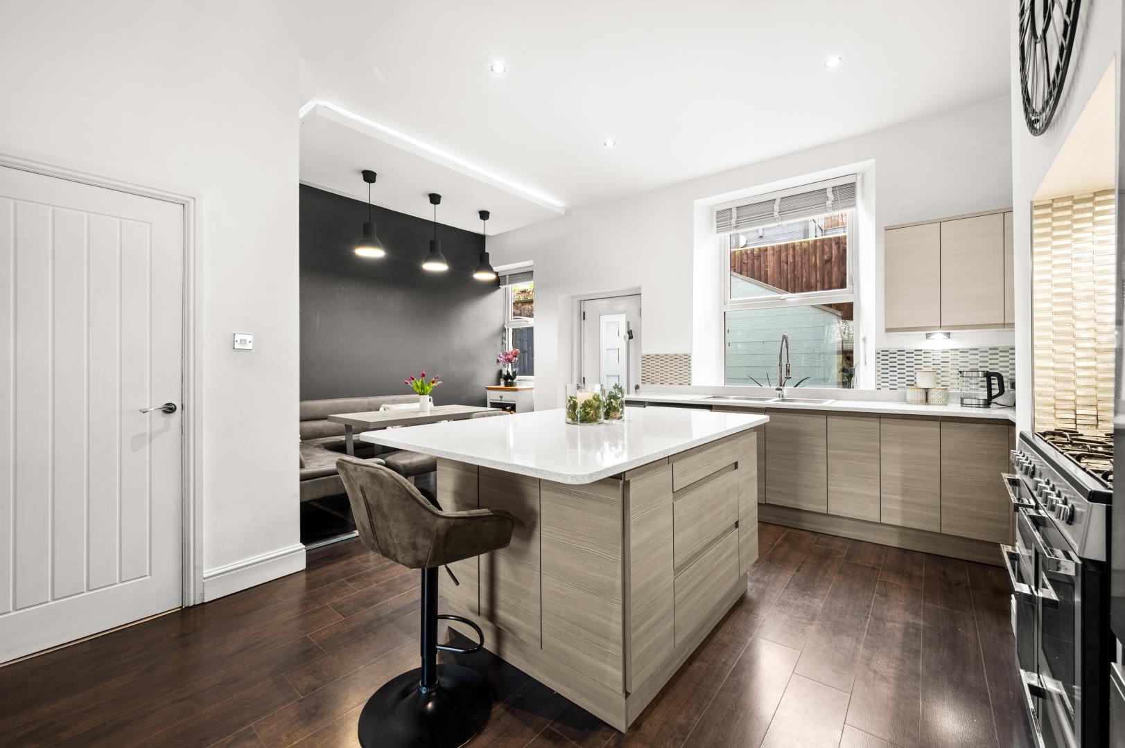 Open plan kitchen/dining area/living area