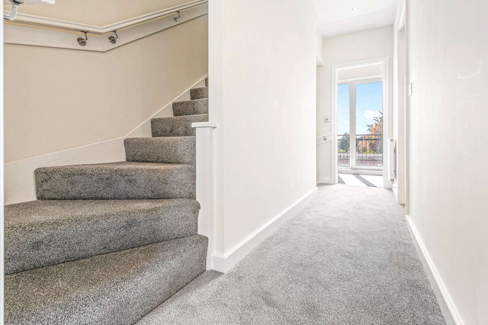 The first floor offers two double bedrooms, one with a balcony, plus a luxurious four-piece family bathroom with a vanity unit, bathtub, thermostatic raindrop shower, and an airing cupboard.