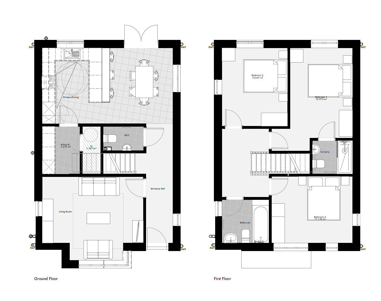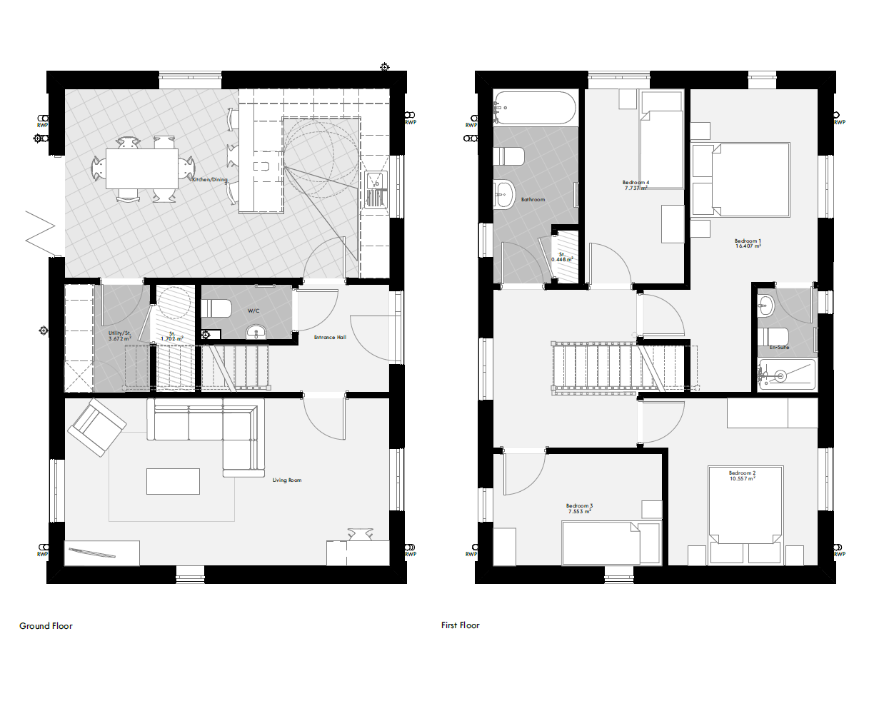 External finishing materials (e.g. brickwork), roofs, windows and doors will all be as detailed on the planning drawings. We will be happy to help you identify specific plot finishes during our discussions when you are choosing your plot.