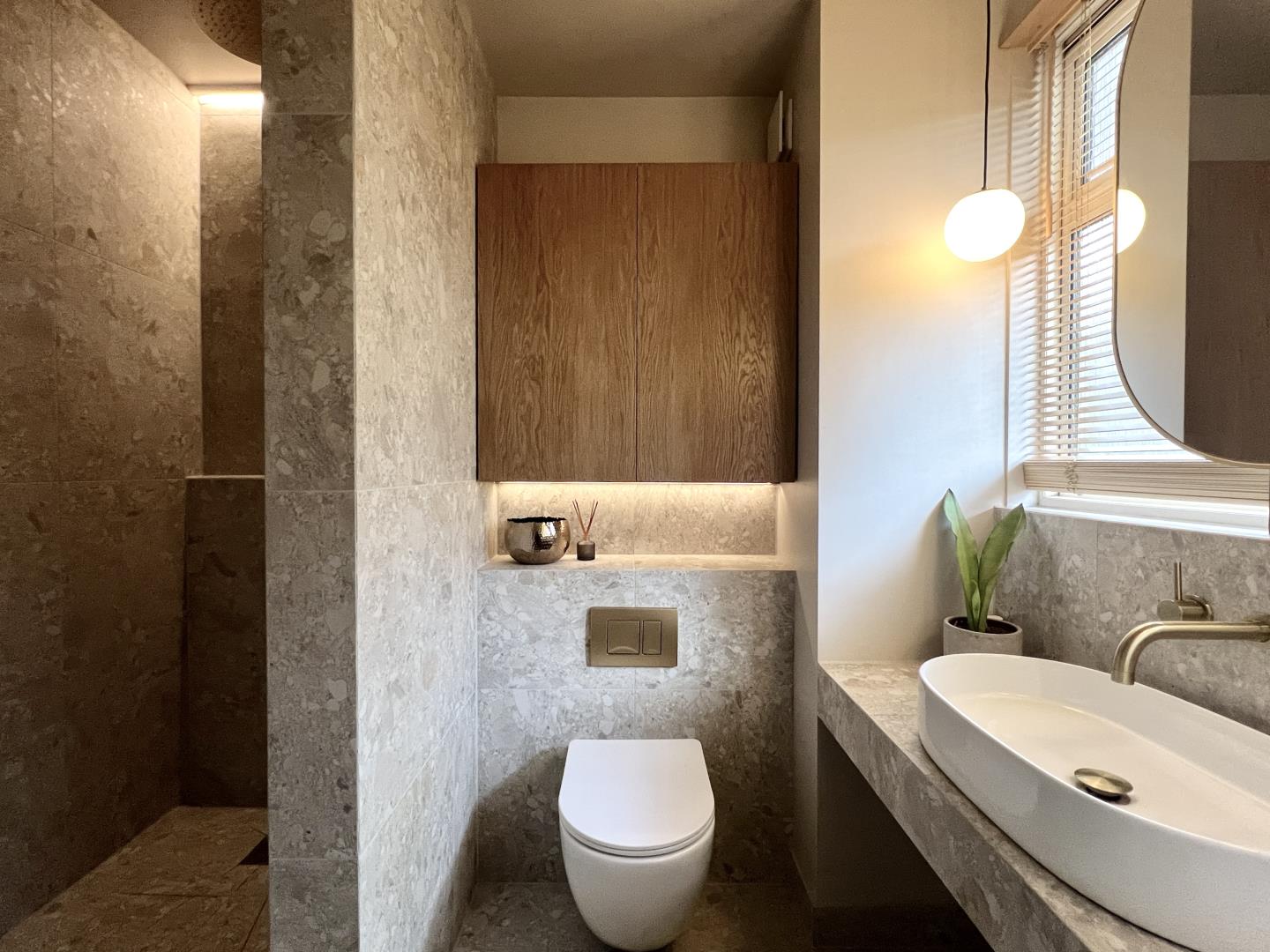This bright and airy flat has been fully refurbished in a considerate mid-century modern style that resonates with the style of the building and makes the most of dual aspect space. Bespoke design details and high quality finishes make this a unique home in a fantastic location, just a short walk from both Kensington High Street and Notting Hill Gate. From the first floor, views out are on to mature trees and period properties, with sun pouring through wall to wall south facing windows. Internally, space has been maximised, with a good sized kitchen, dedicated laundry cupboard and generous walk in rain shower. Integrated feature lighting and a ceiling fan in the bedroom add an extra touch that sets this property apart.