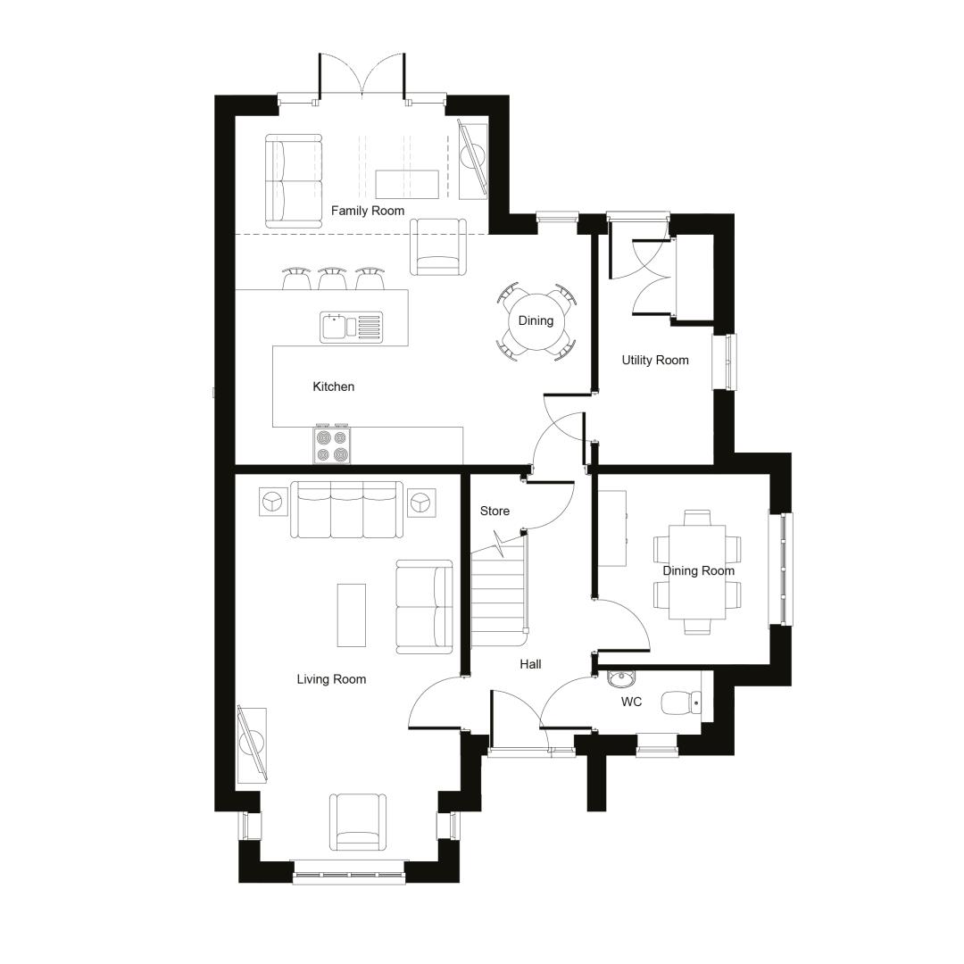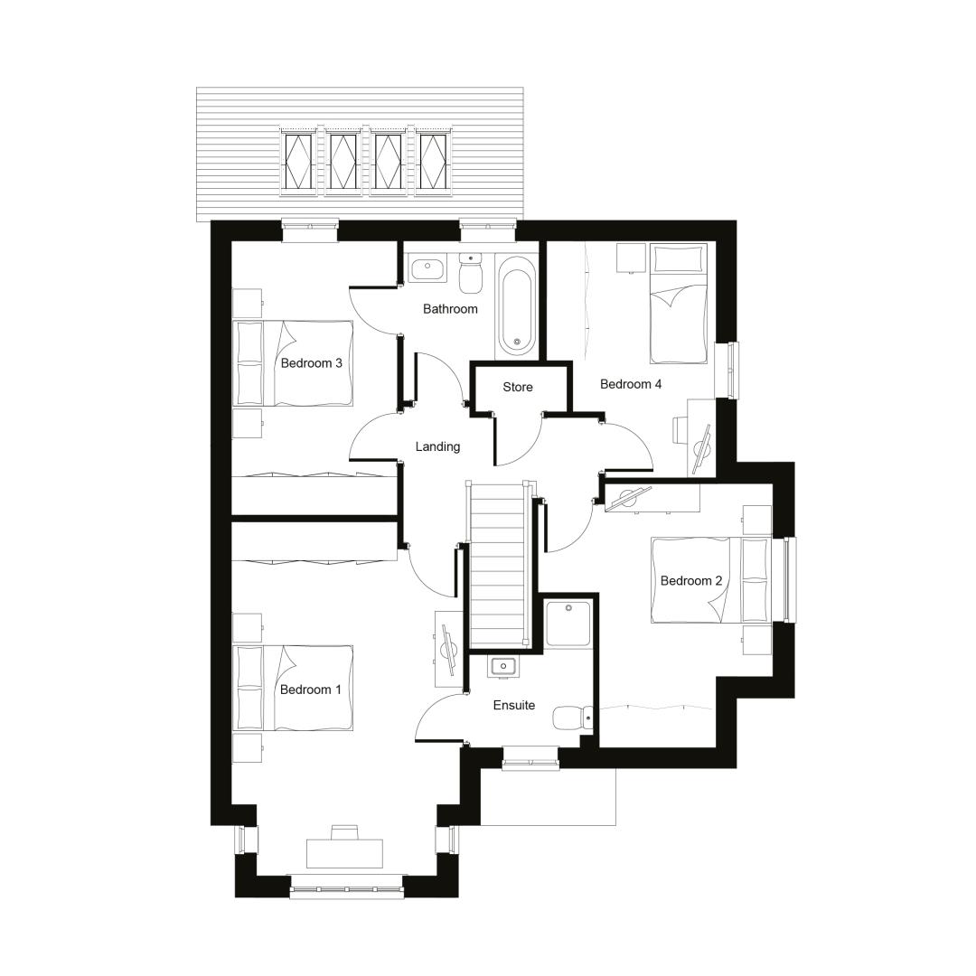 THE NEW HAIGH is a four bedroom detached home with large open plan family, dining and kitchen area with feature skylight windows, stylish breakfast bar and French doors leading to rear garden. Separate dining room and bay fronted living room. Useful large utility room and downstairs WC. Four spacious bedrooms with ensuite to the main bedroom, large family bathroom, with ample storage throughout and single detached garage.